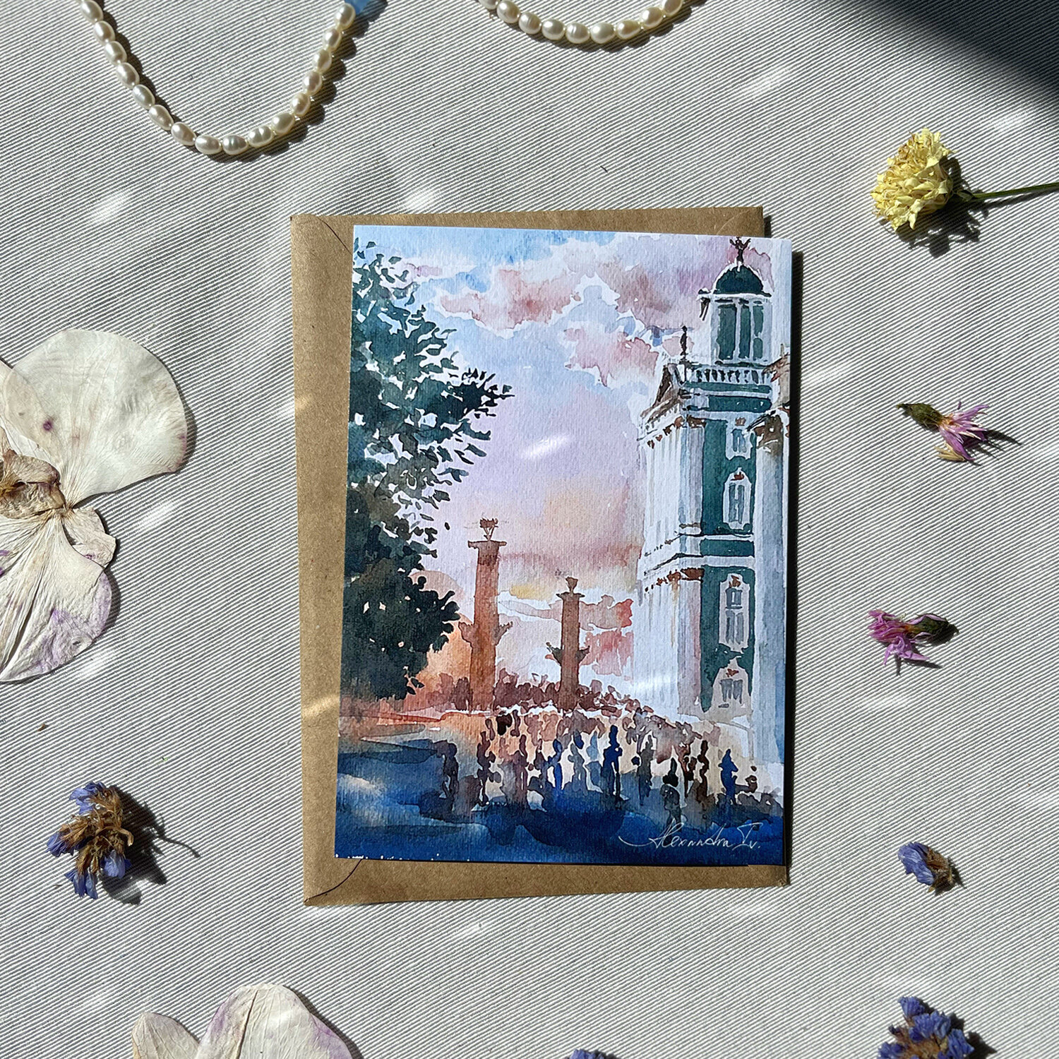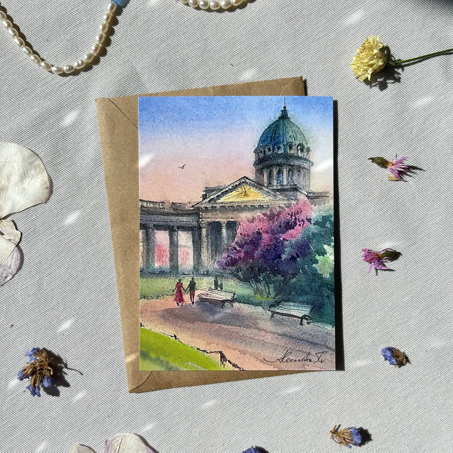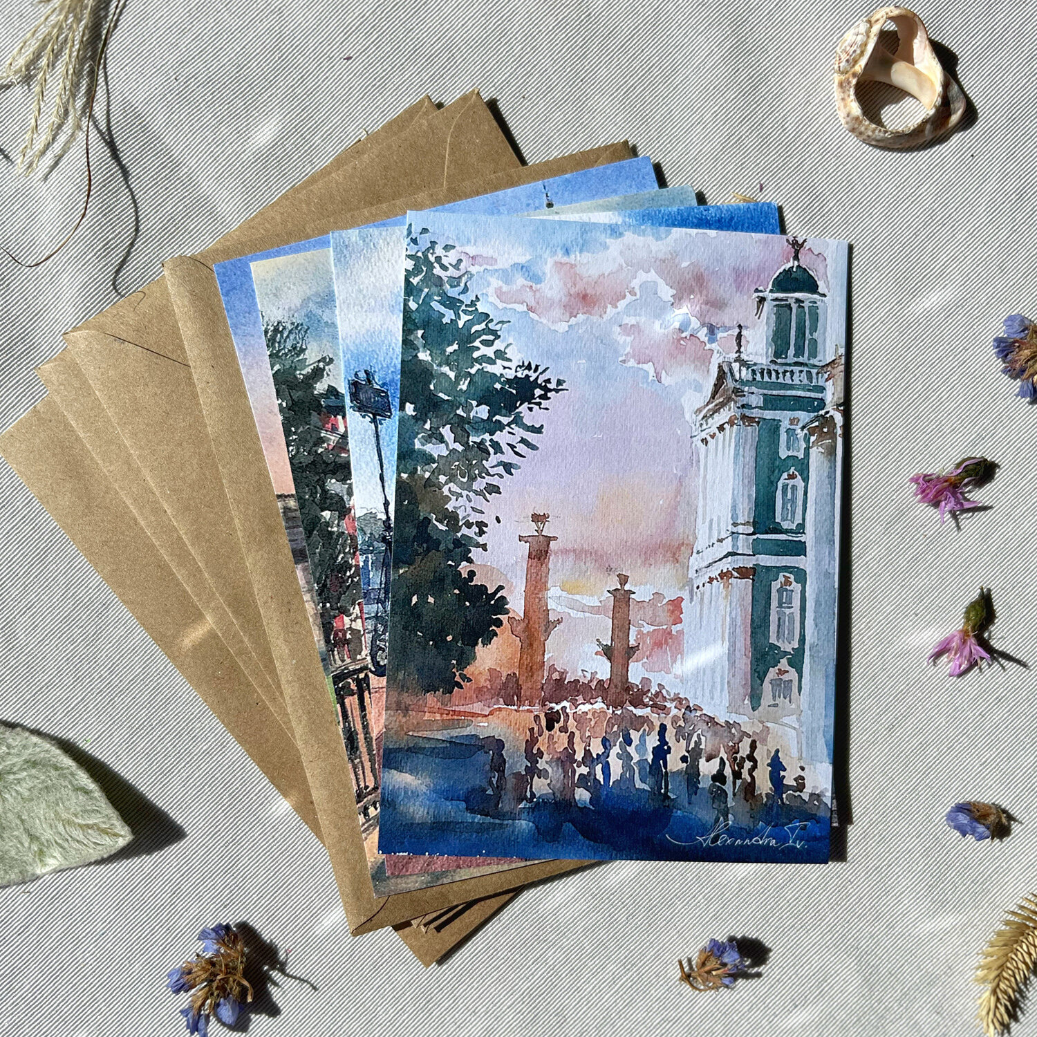 Набор акварельных открыток Москва 14,8 х 10,5 см от Alexandra Iv. 4 шт. и 4 крафт-конверта