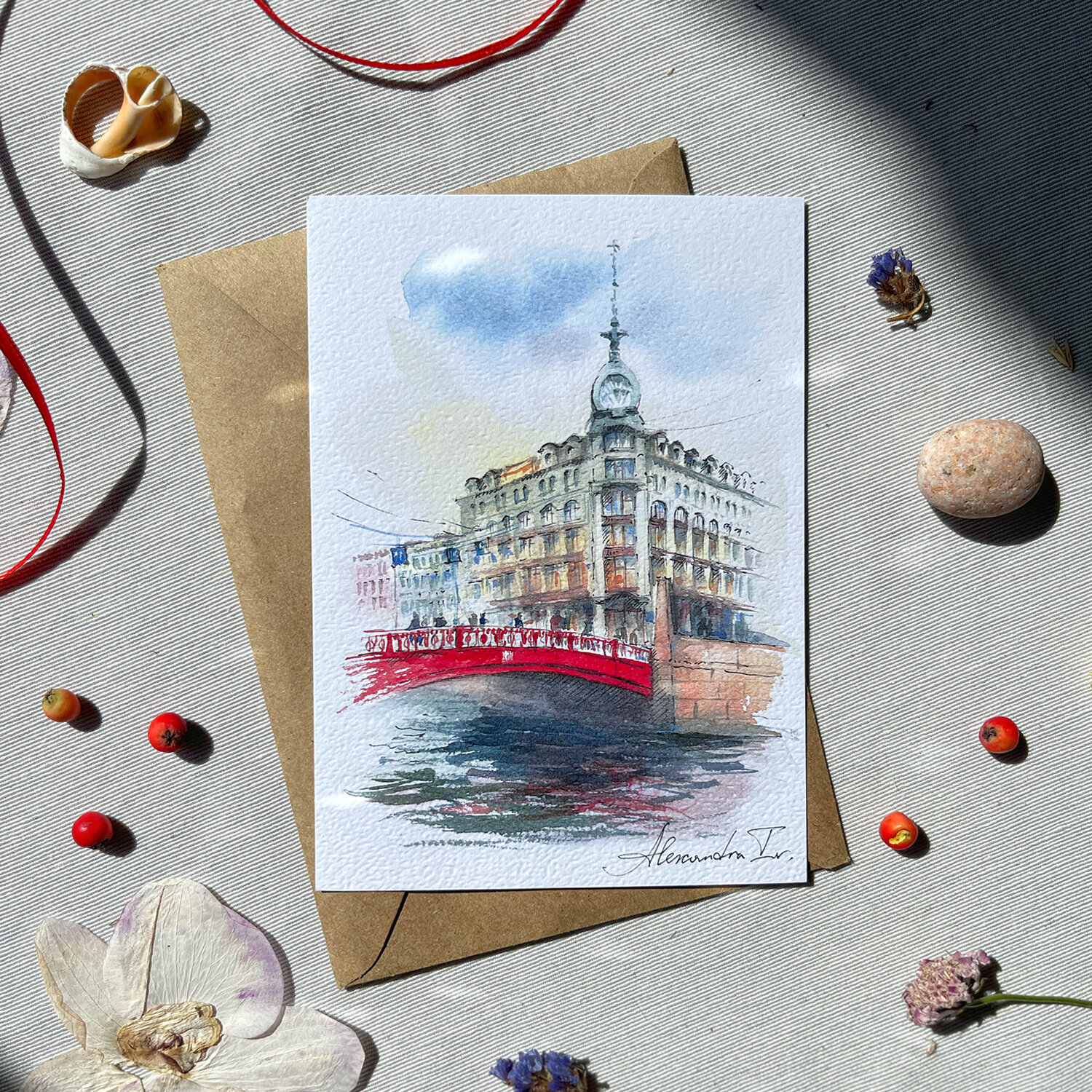 Купить Набор открыток Санкт- Петербург "Красные акценты"от Alexandra Iv. 4 шт. и 4 конверта
