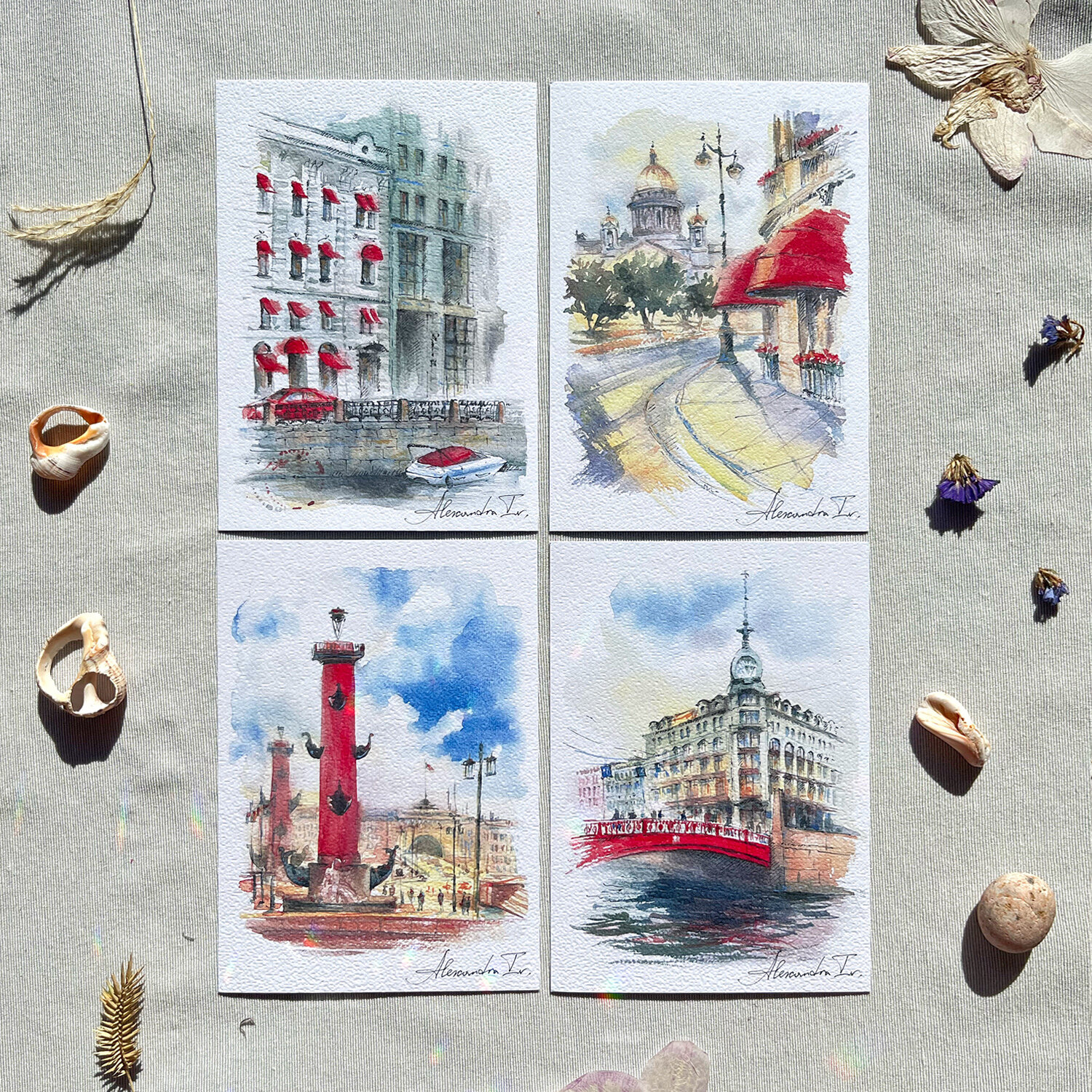 Набор открыток Санкт-Петербург от Alexandra Iv. 4 шт. и 4 конверта.