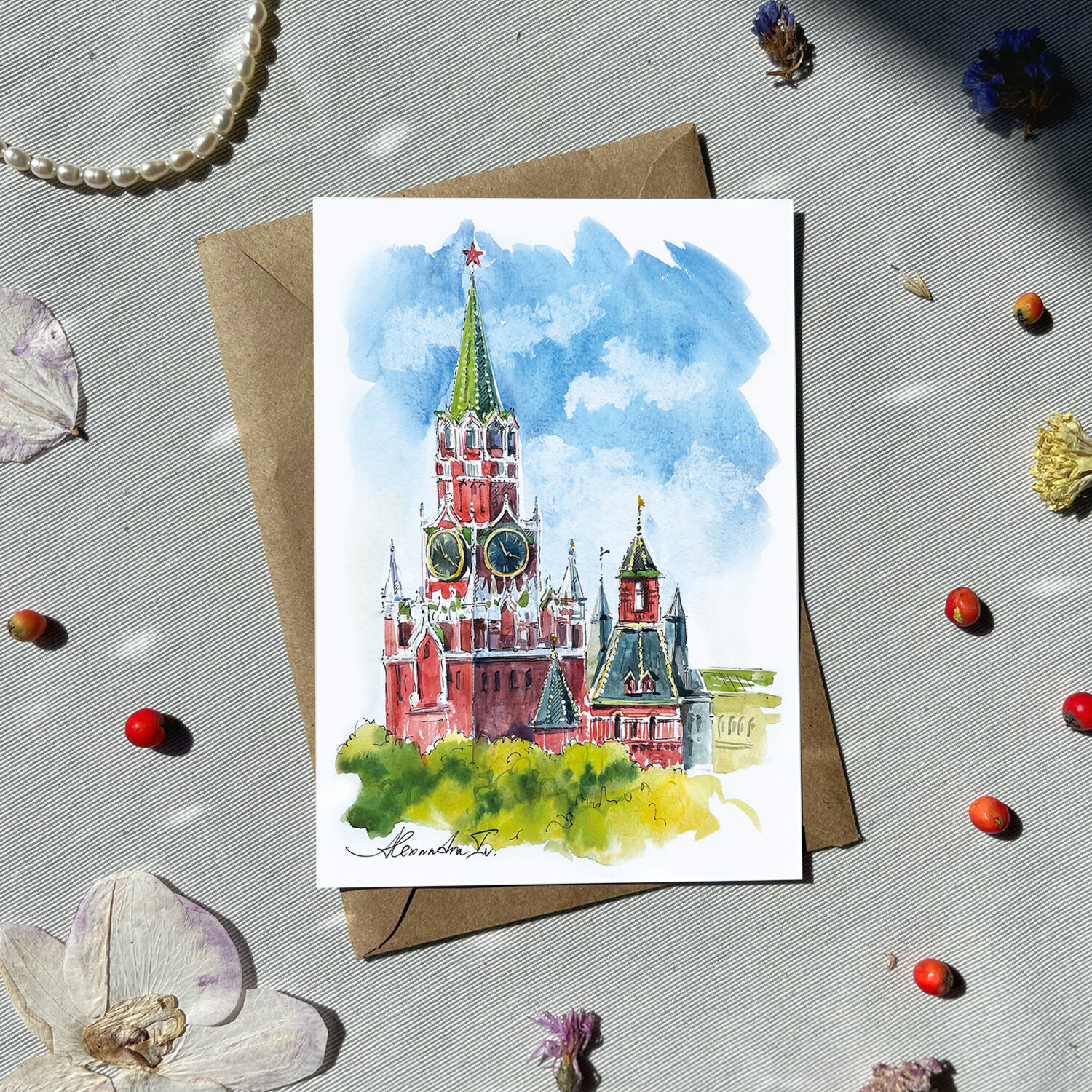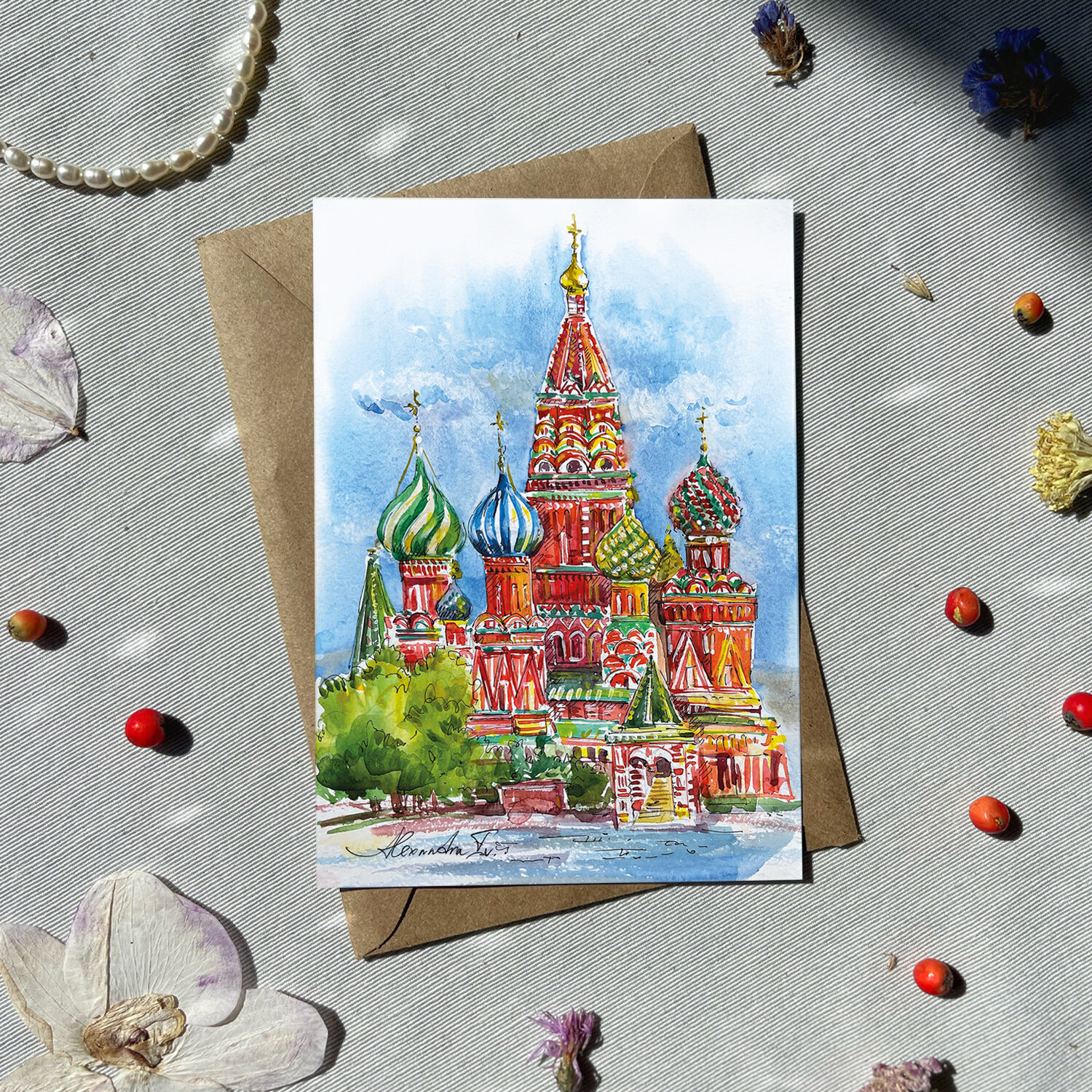 СохранитьНабор акварельных открыток Москва 14,8 х 10,5 см от Alexandra Iv. 4 шт. и 4 крафт-конверта интересное: