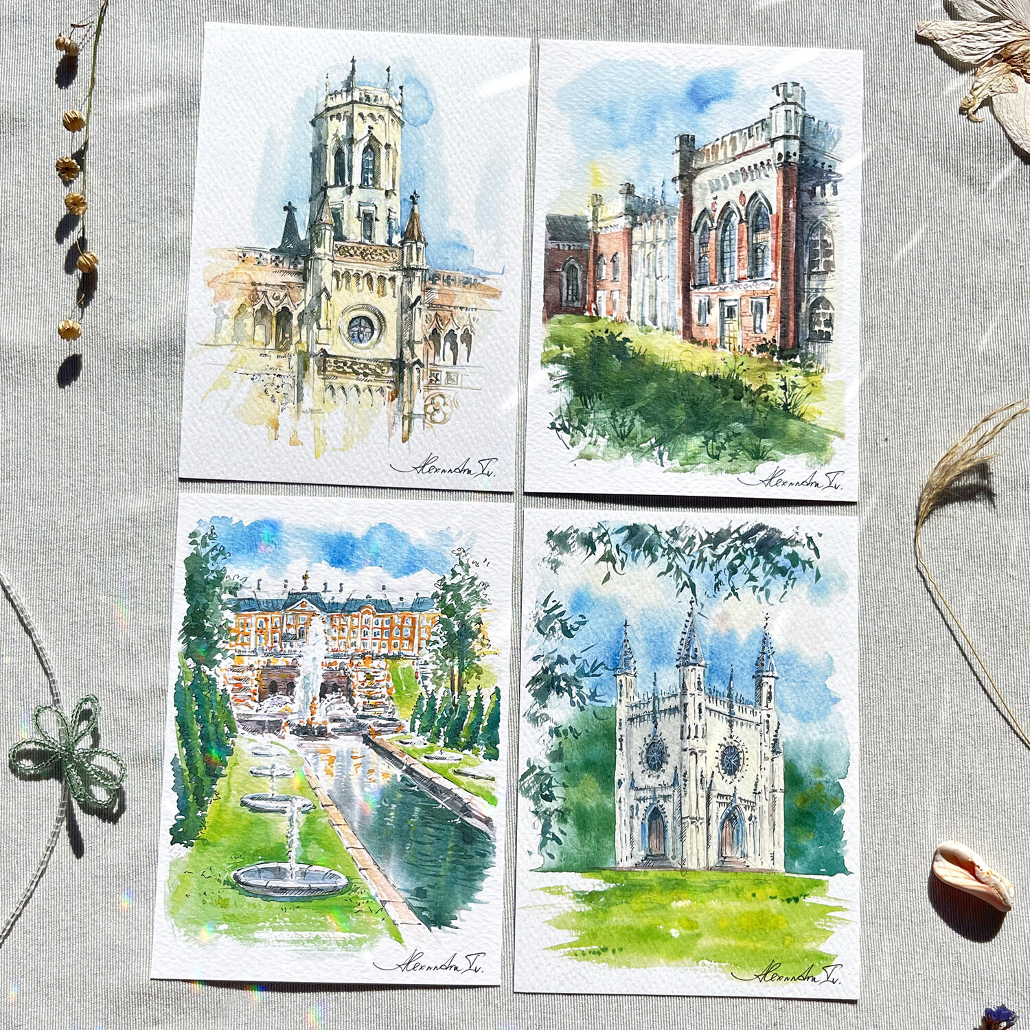 Набор акварельных открыток Москва 14,8 х 10,5 см от Alexandra Iv. 4 шт. и 4 крафт-конверта