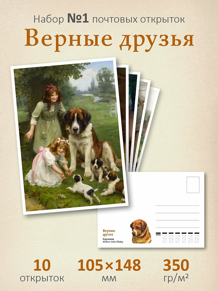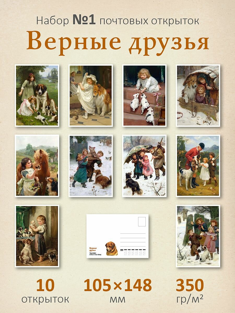 Набор 10 почтовых открыток для посткроссинга "Верные друзья №1" интересное: