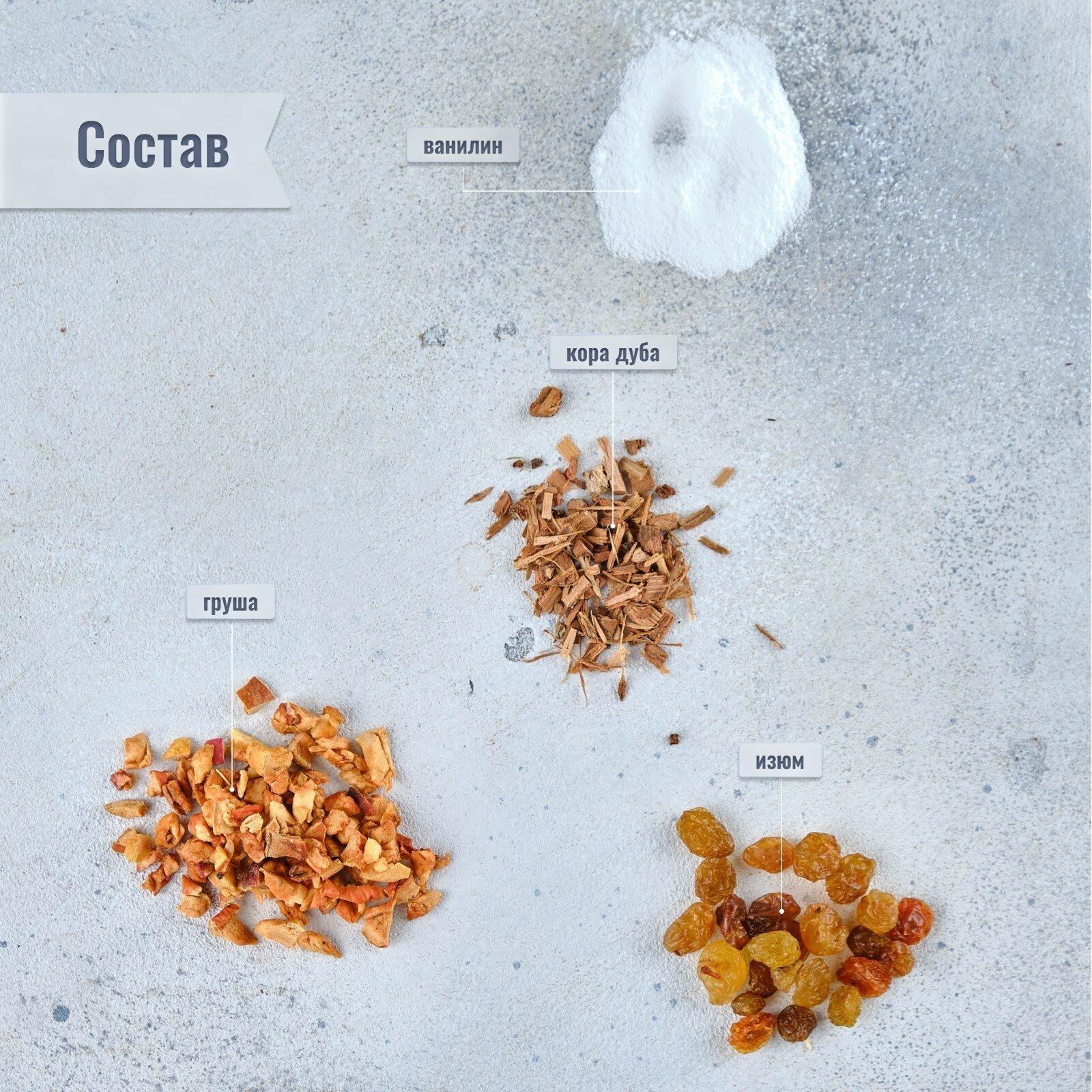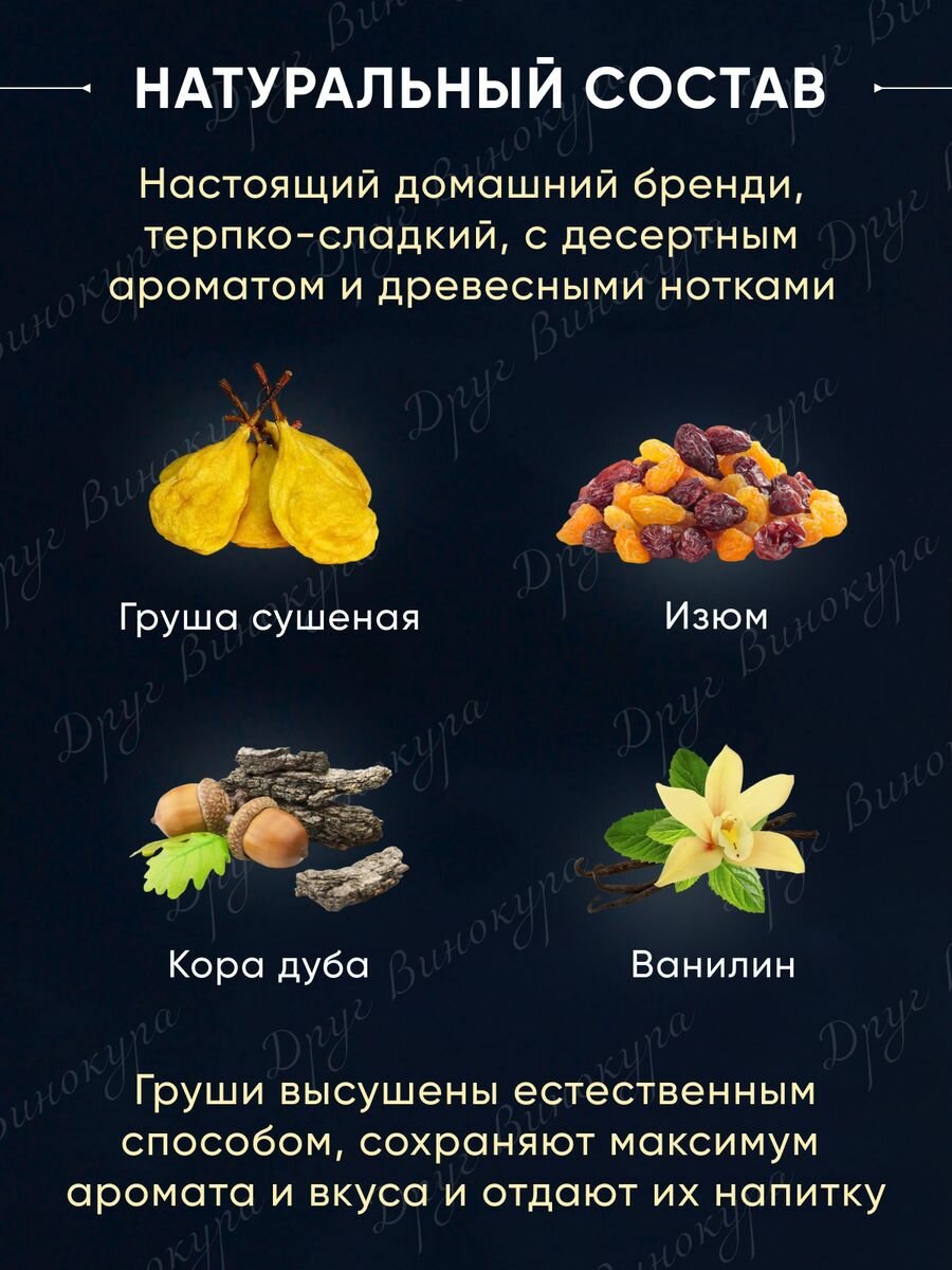 | Состав | Вишня сушеная, шиповник, гвоздика, дубовая щепа, корица, миндаль, изюм |
