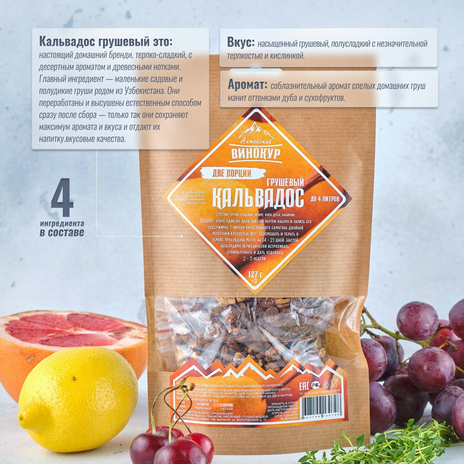 Набор трав и специй для домашних настоек на самогоне "Алтайский Винокур", Кальвадос грушевый 2 в 1