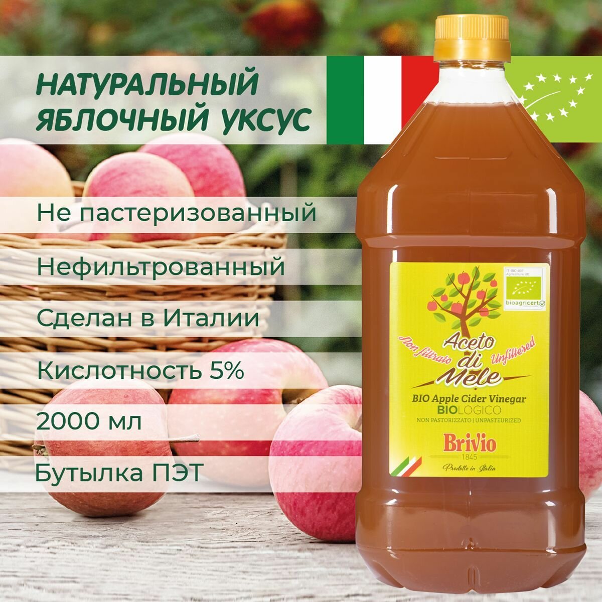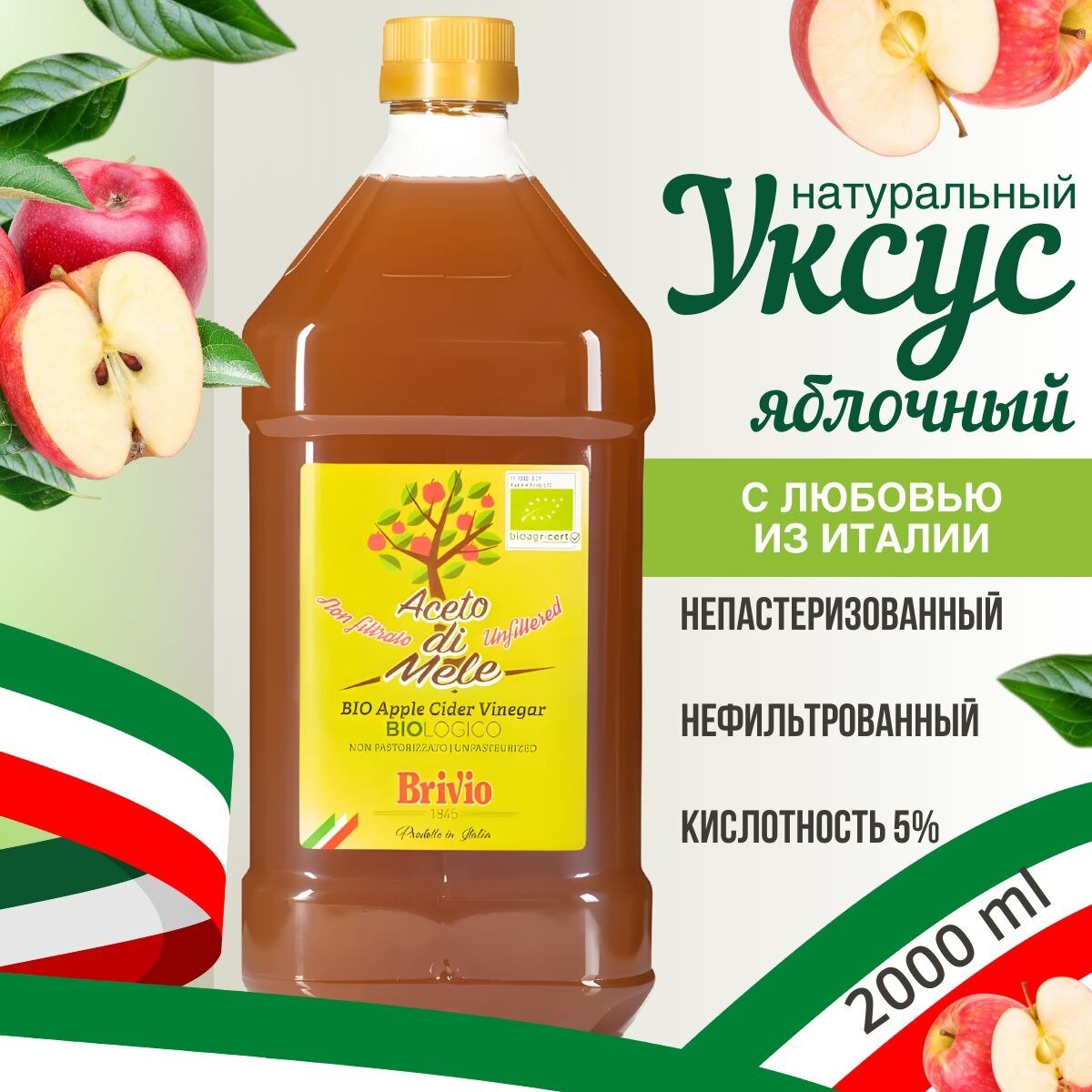 Купить Brivio яблочный уксус Натуральный, Нефильтрованный 2 литра
