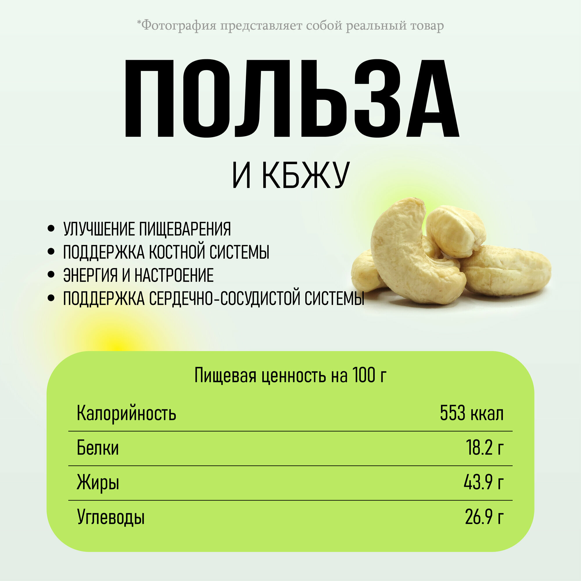 | Состав | Кешью сырые 100% натуральный |