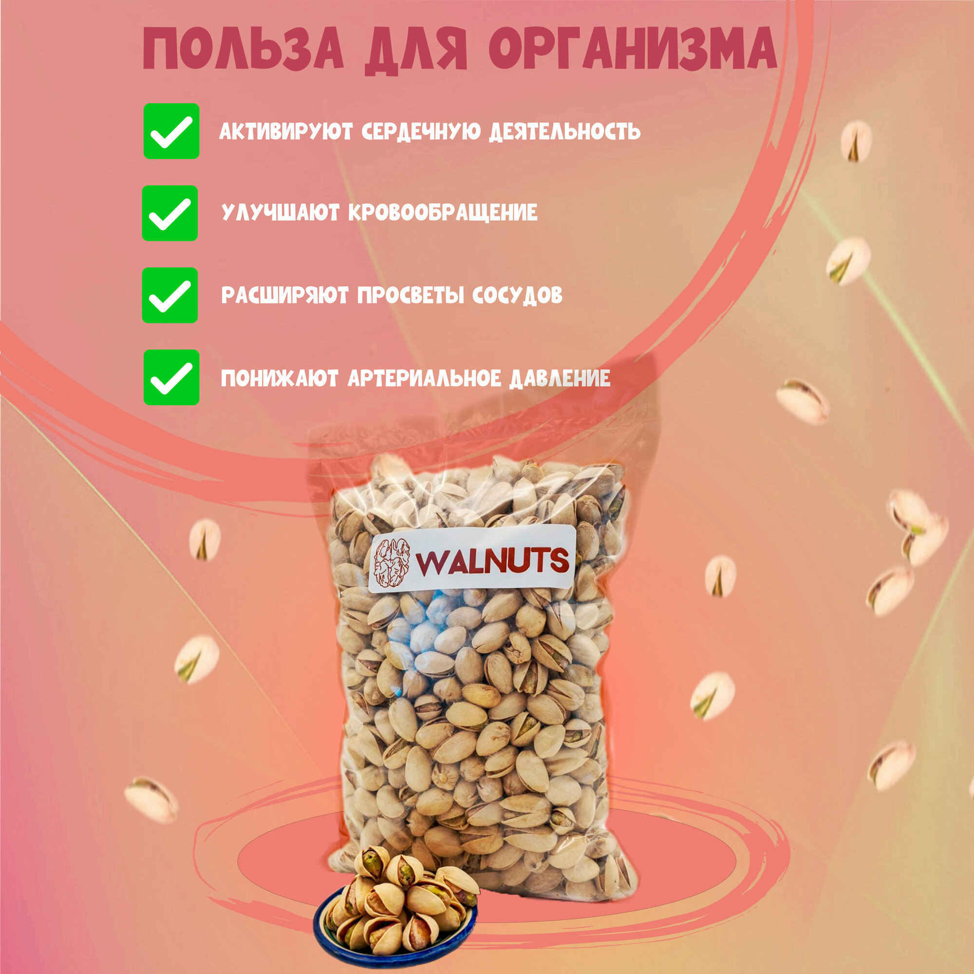 Купить Фисташки "WALNUTS" жарено-соленые "Калифорнийские" Премиум в скорлупе 1000 грамм, отличной прожаркой отборные и крупные орехи