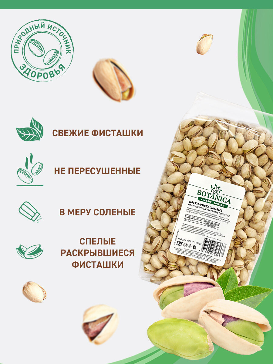 Фисташки соленые жареные Botanica, 1 кг интересное:
