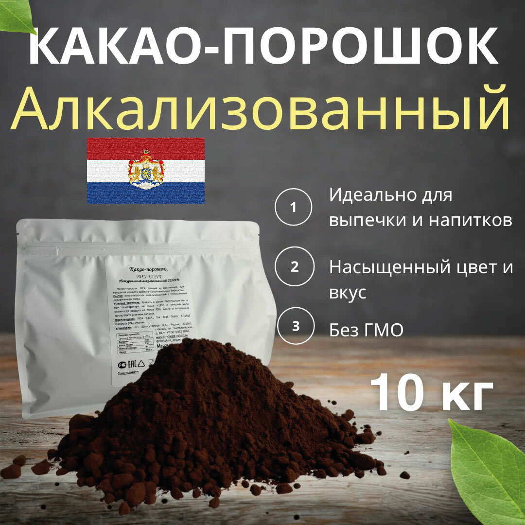 Купить Какао порошок BON TASTY жирность 20/22%, натуральный, алкализованный 10кг