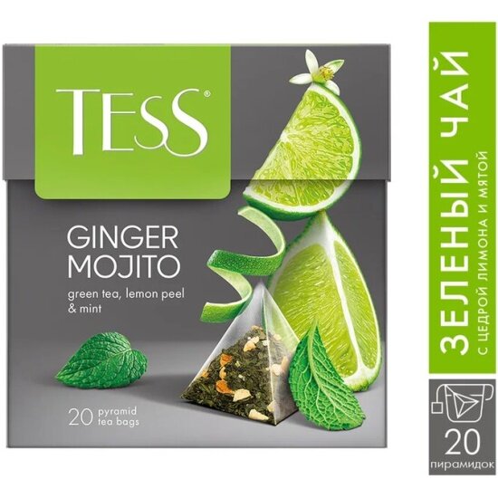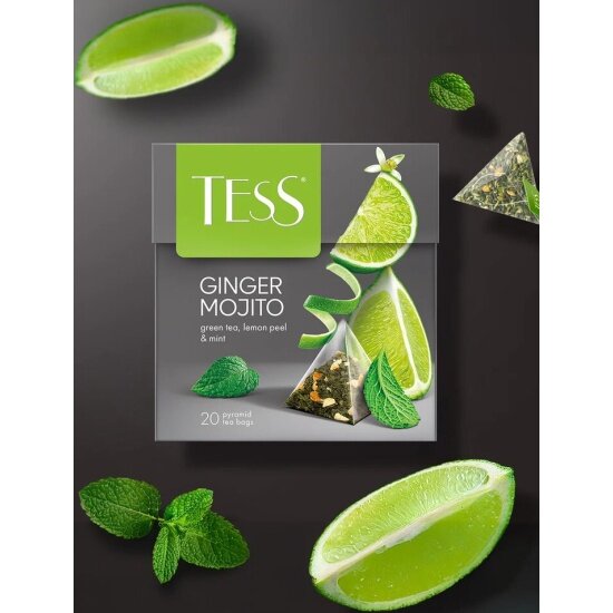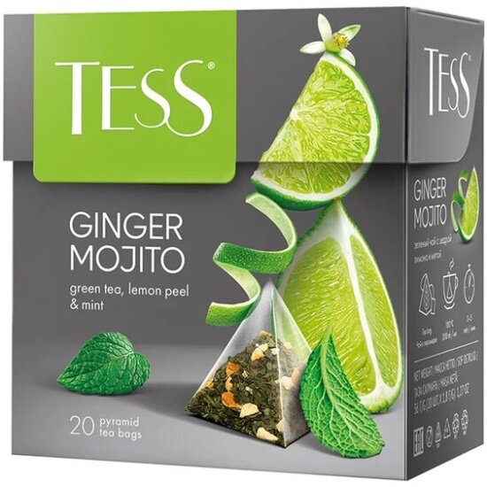 Чай Tess GINGER MOJITO зеленый ароматизированный, 20 шт, пирамидки интересное: