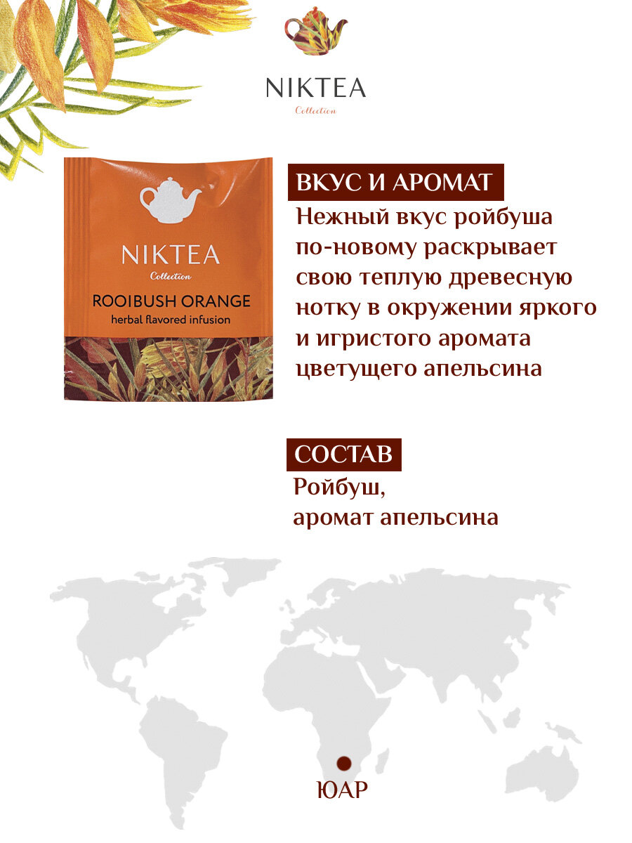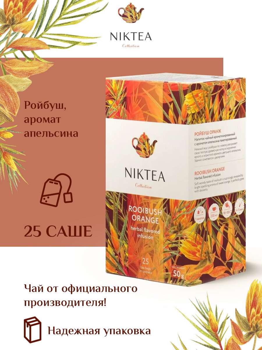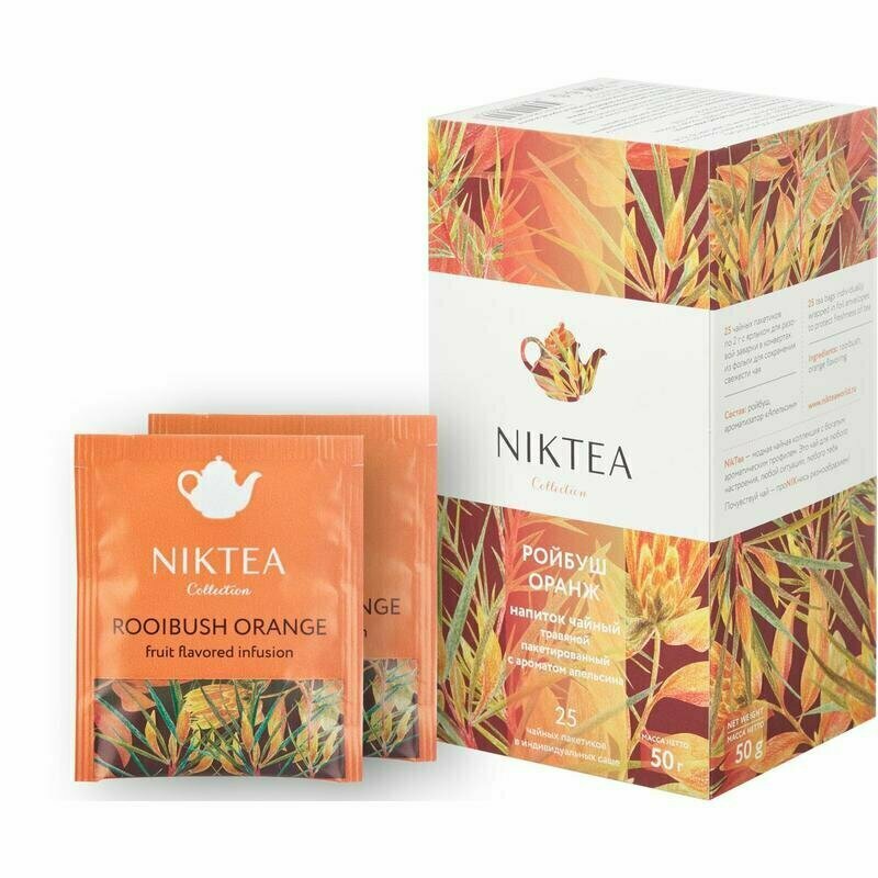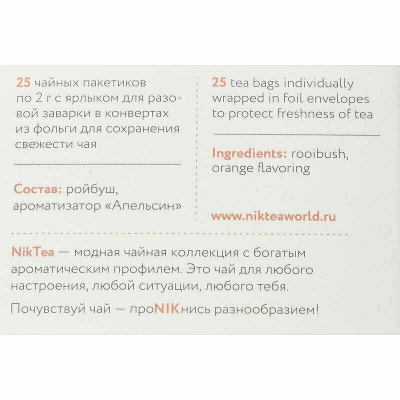 Чай Nikteа Rooibush Orange/ Ройбуш Оранж, напиток чайный с ароматом апельсина пакетированный, 25 п х 2 г
