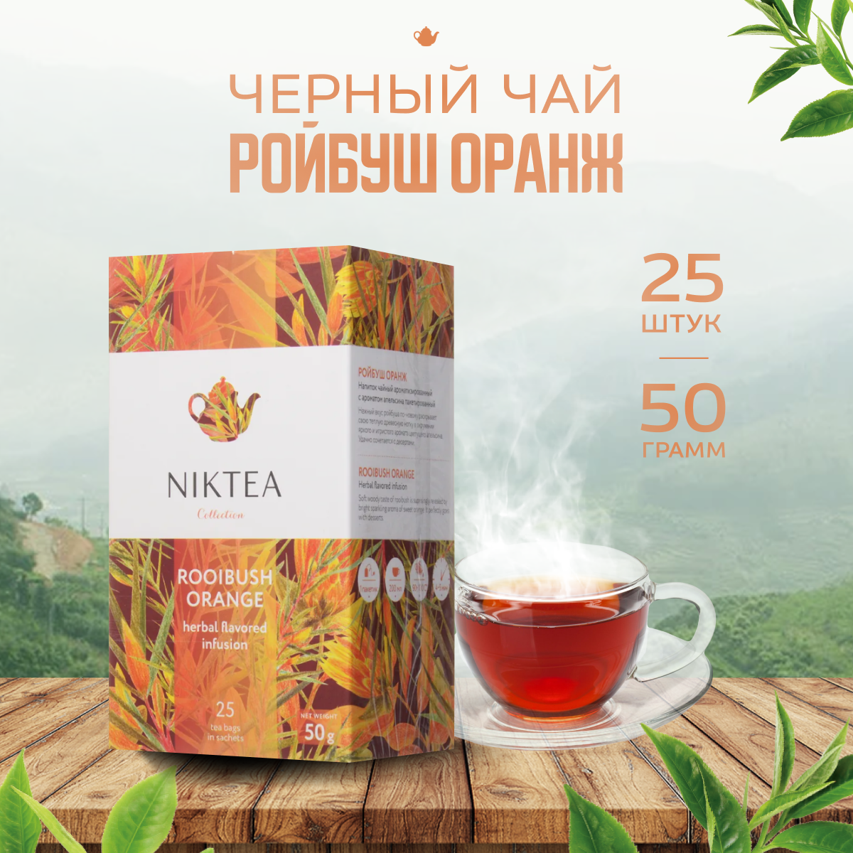 Чай Nikteа Ройбуш Оранж с ароматом апельсина, 25 пакетиков