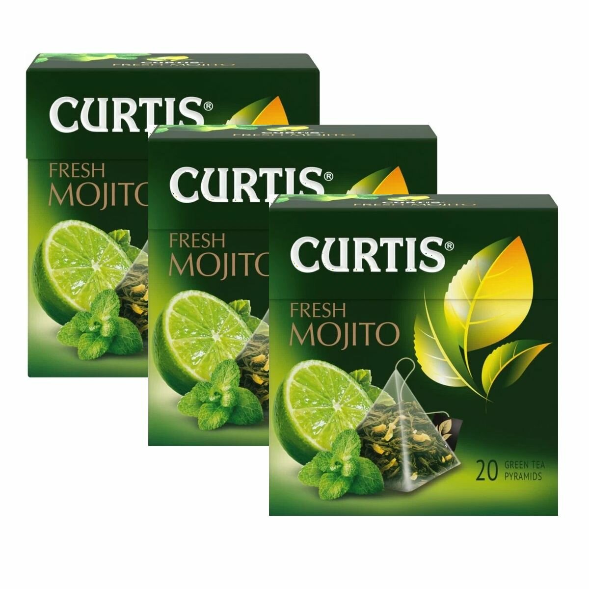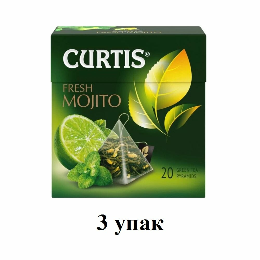CURTIS Чай зеленый В пирамидках, с ароматом мохито, мятой, цедрой цитрусовых и лемонграссом, фруктовый ароматизированный, Fresh Mojito, 3х20 шт