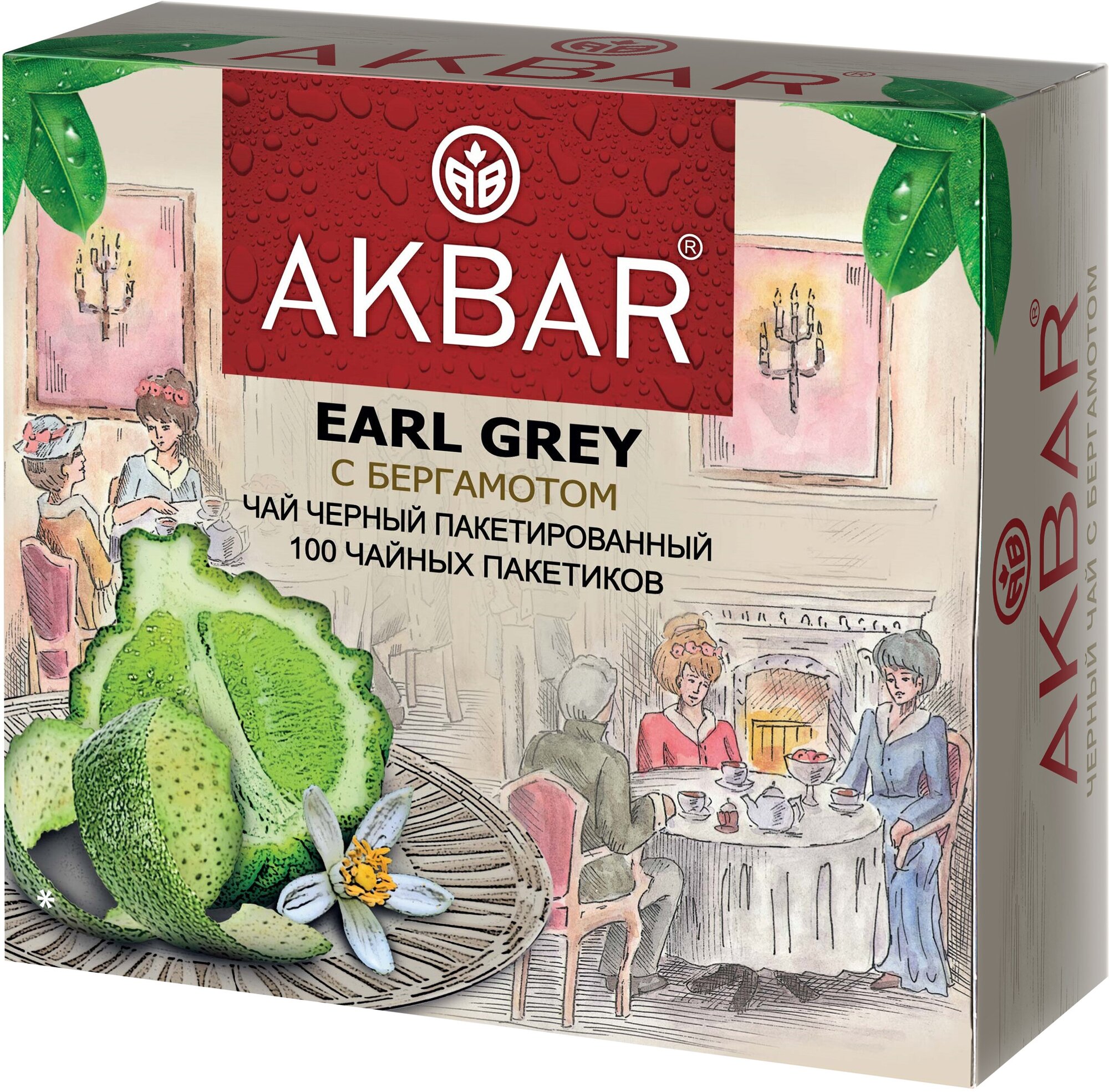 Купить Чай в пакетиках акбар "Граф Грей" черный байховый мелкий с ароматом бергамота 100 шт.