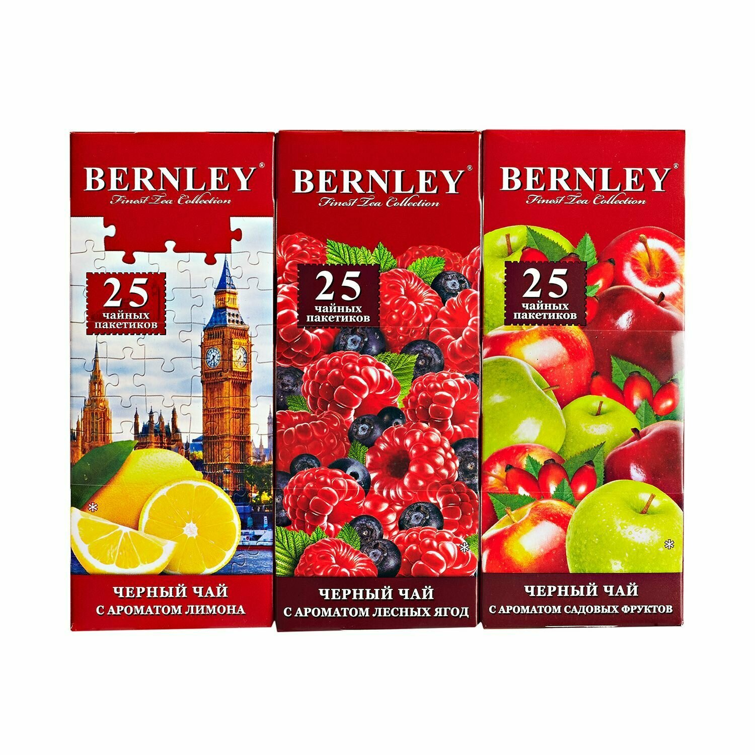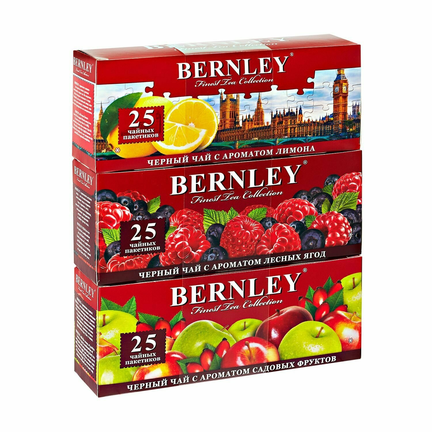 Чай черный Bernley Лимон + Лесные ягоды + Садовые фрукты, 3 пачки по 25 пакетов Блок