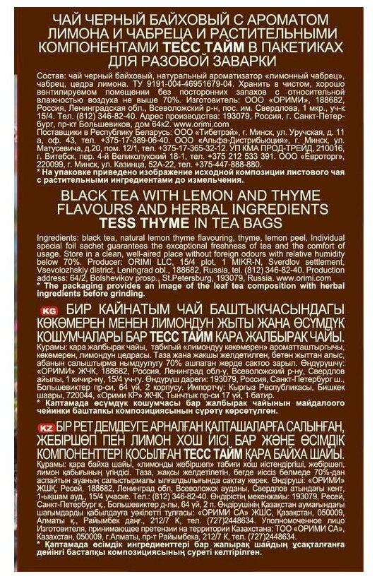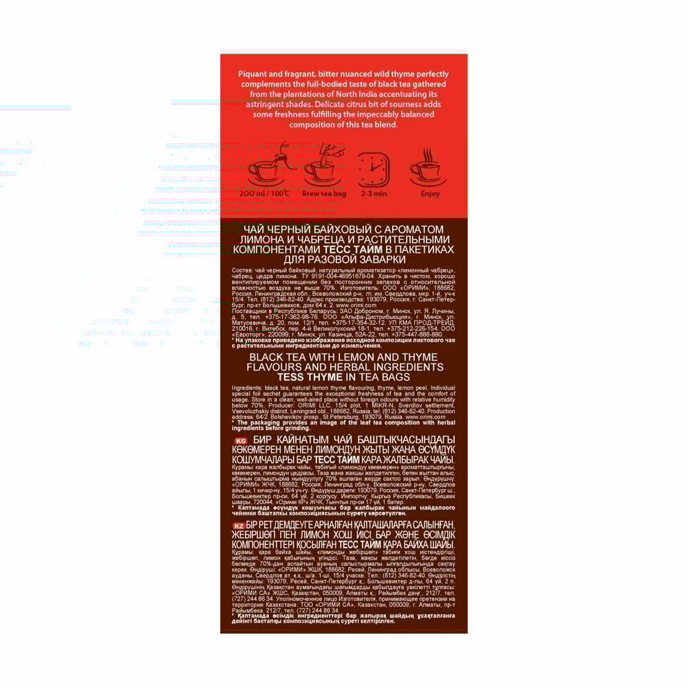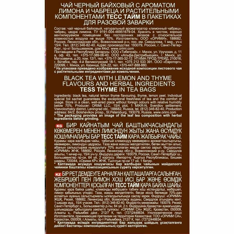 Tess Thyme черный чай в пакетиках, 25 пак.