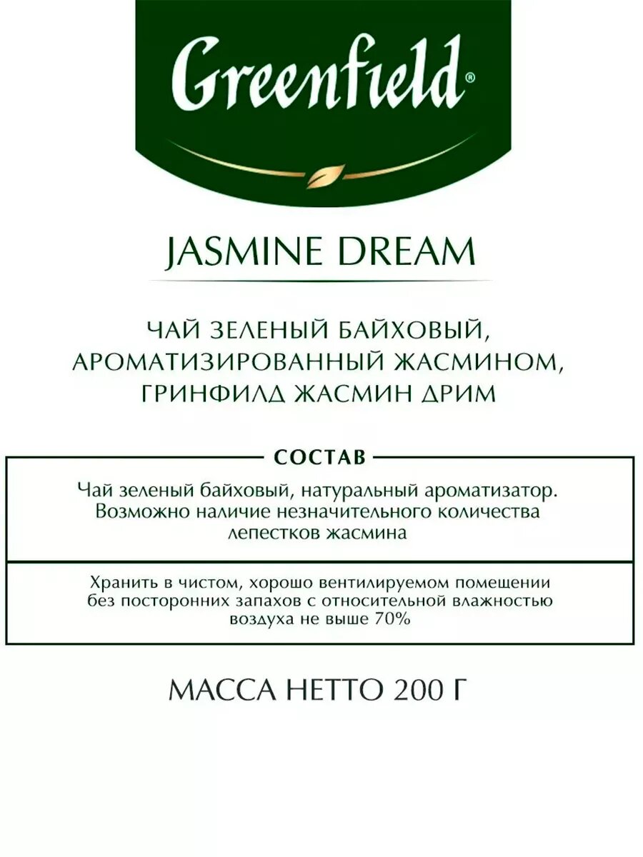 Чай зеленый Greenfield Jasmine Dream листовой 200 грамм интересное: