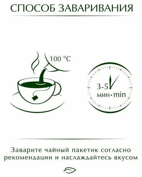 | Способ приготовления | заварить крутым кипятком чайные листья из расчета 1 чайная ложка на 1 порцию напитка, выдержать 5-7 минут |