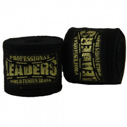 Бинты боксерские LEADERS Semi elastic (50% хлопок/50% эластан, черный) (3,5 метра)