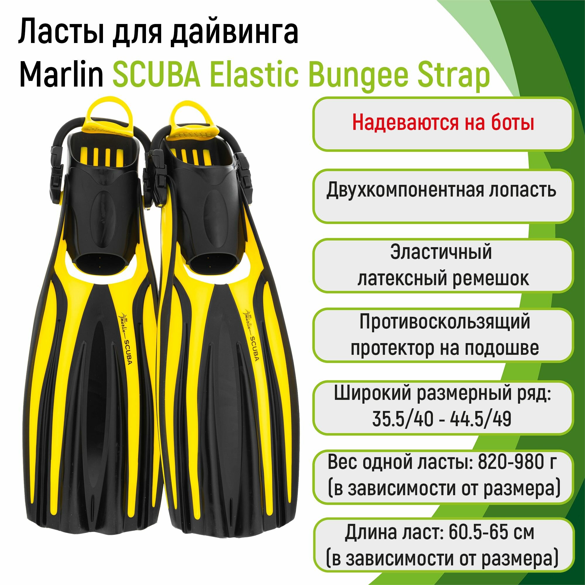 СохранитьЛасты MARLIN SCUBA Yellow (Elastic Bungee Strap) 44,5-49 интересное: