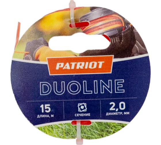 Леска для садового триммера PATRIOT Duoline D 2,0 мм L 15 м, скрученный квадрат