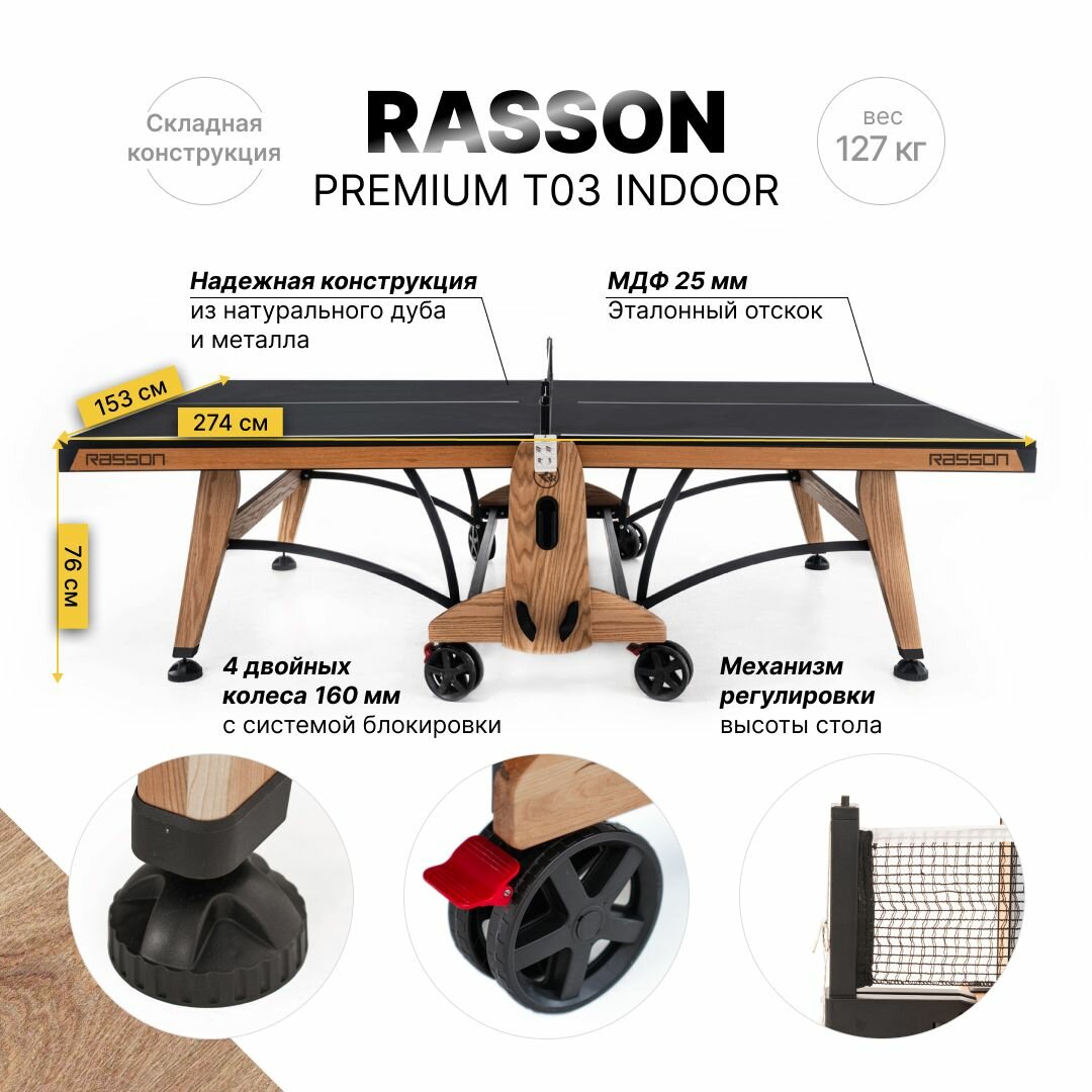 Теннисный стол с сеткой RASSON PREMIUM T03 INDOOR 274 х 152,5 х 76 см натуральный орех