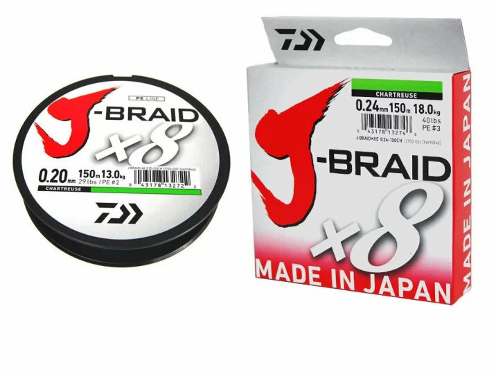 Шнур плетеный Daiwa J-Braid X8 Chartreuse 150m 0.10mm 13lb