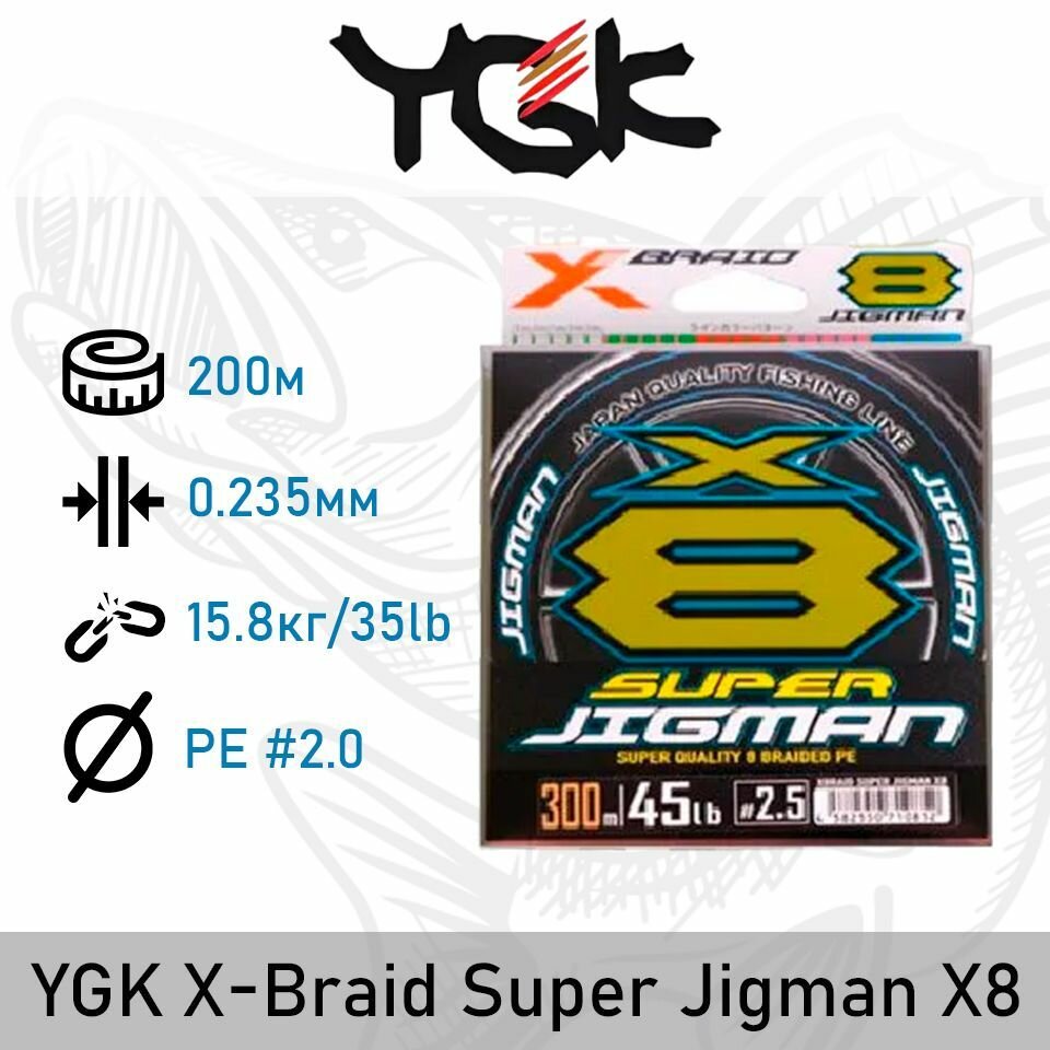 Купить YGK X-Braid Super Jigman X8 (200m #2.0)