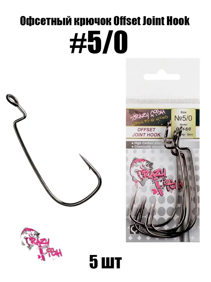 Крючки офсетные Crazy Fish Offset Joint Hook №5/0 5 шт.