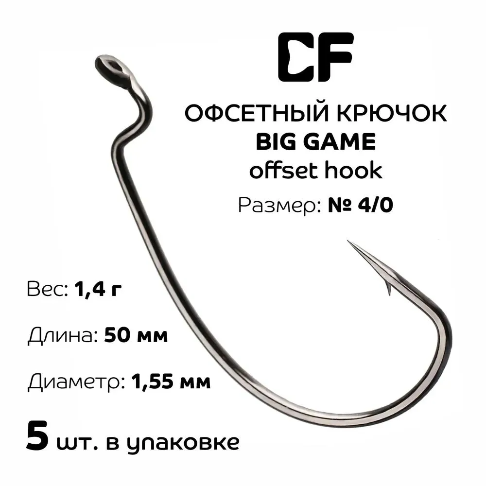 Купить Офсетный крючок CF Big Game Offset Hook #4/0 5шт.