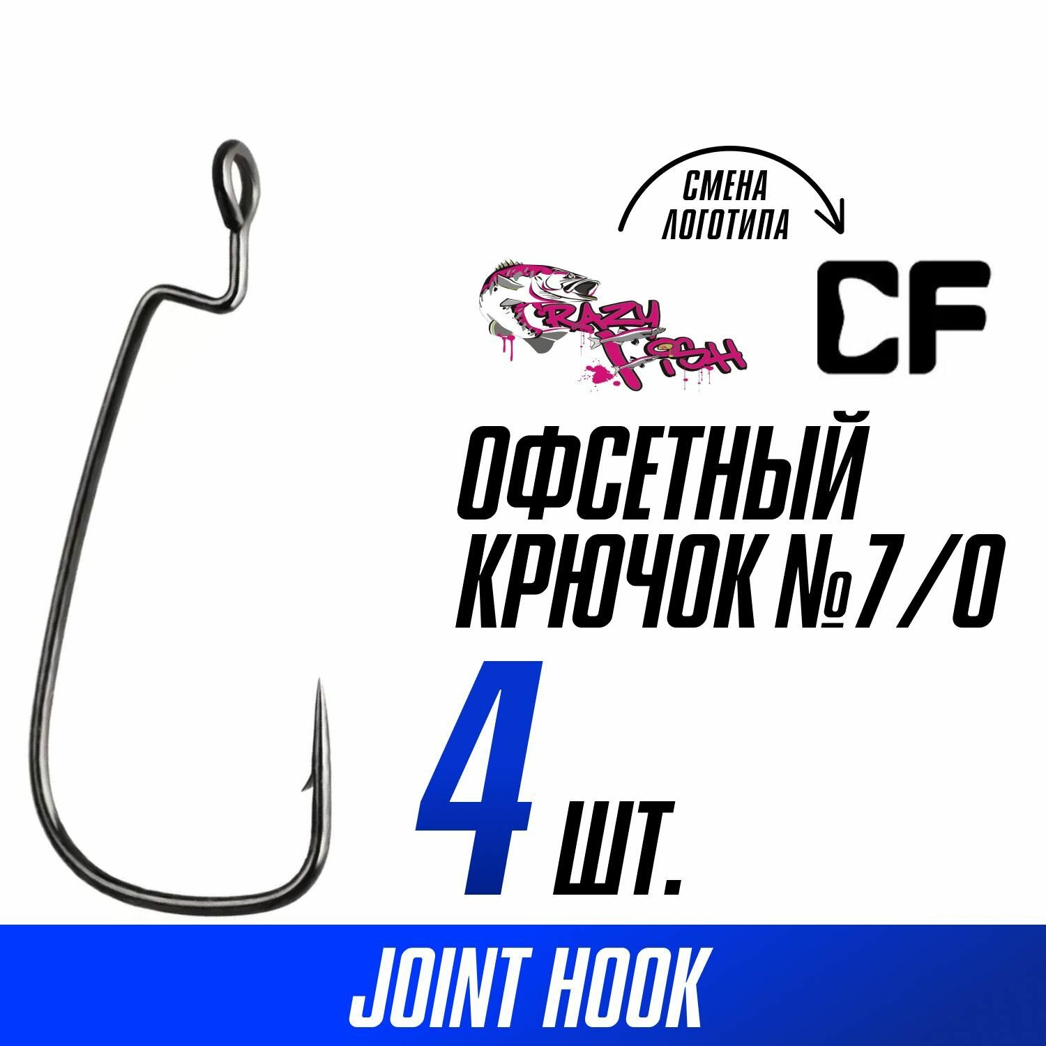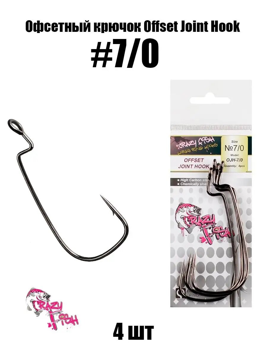 Крючки офсетные Crazy Fish OFFSET Joint Hook #7/0 (4 шт) OJH-7/0 4