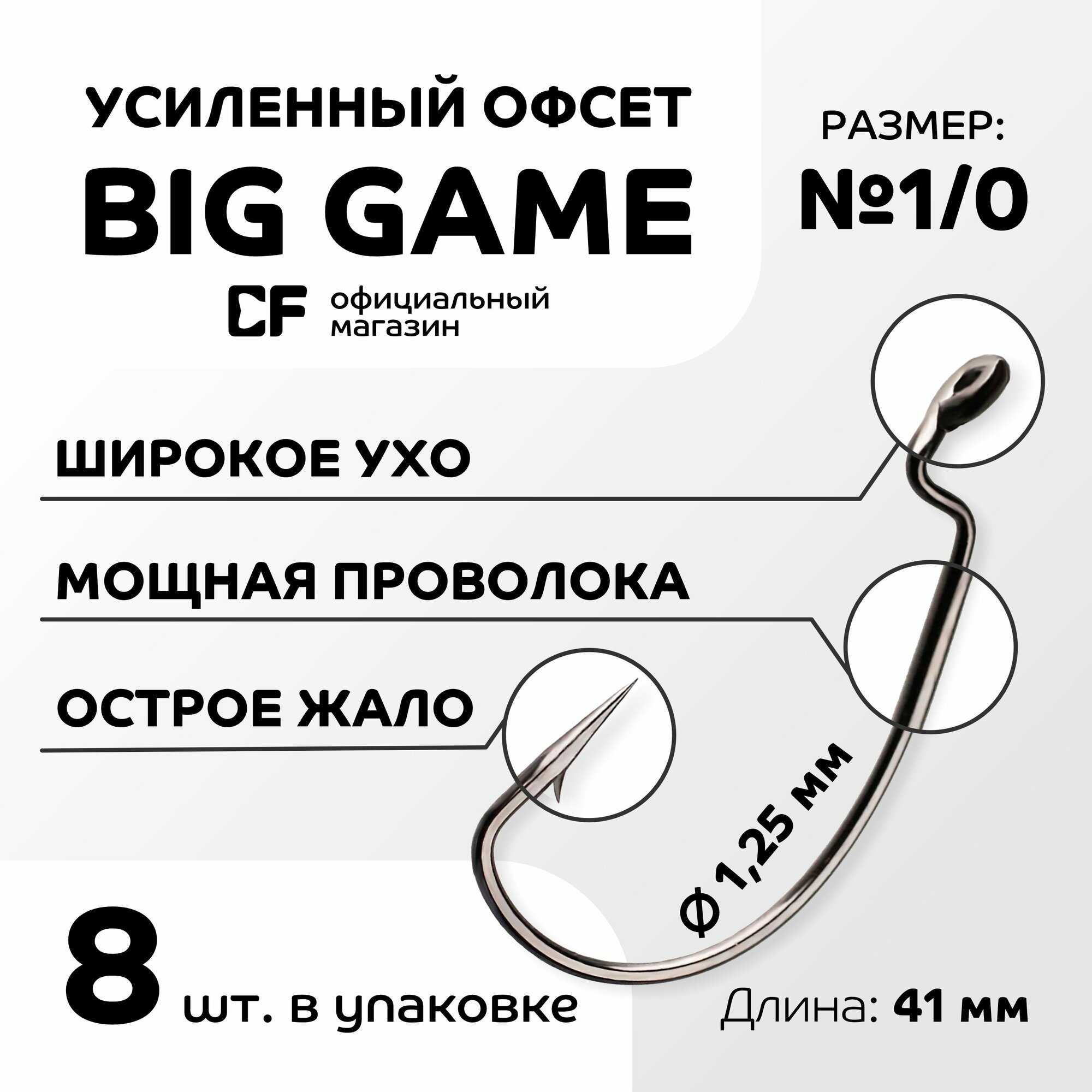 Ниже Вы можете прочитать отзывы на Офсетный крючок CF Big game offset hook №1/0 8 шт, ознакомится с подробными характеристиками, посмотреть интересные обзоры и фотографии на Офсетный крючок CF Big game offset hook №1/0 8 шт.