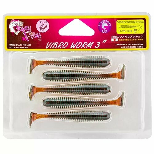 Ниже Вы можете прочитать отзывы на Силиконовые приманки Crazy Fish Vibro worm 3" 11-75-14-6, кальмар, 5 шт. Приманка для рыбакли, 75 мм., ознакомится с подробными характеристиками, посмотреть интересные обзоры и фотографии на Силиконовые приманки Crazy Fish Vibro worm 3" 11-75-14-6, кальмар, 5 шт. Приманка для рыбакли, 75 мм..