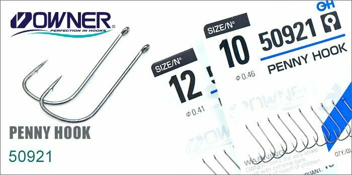 Крючки рыболовные Owner 50921 № 12 (11шт) Penny Hook, одинарные
