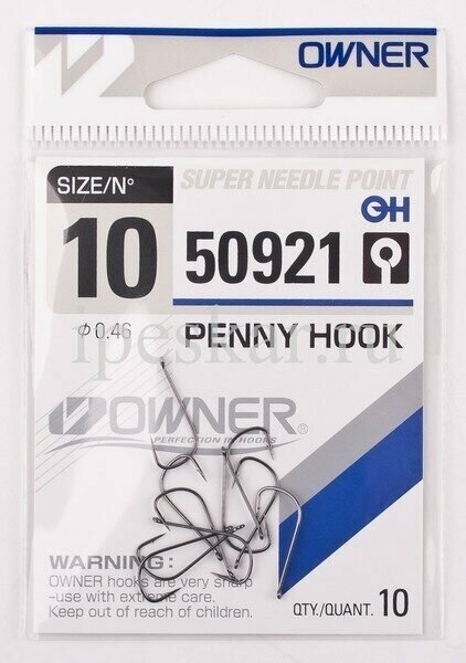 Крючки рыболовные Owner 50921 № 10 (10шт) Penny Hook, одинарные