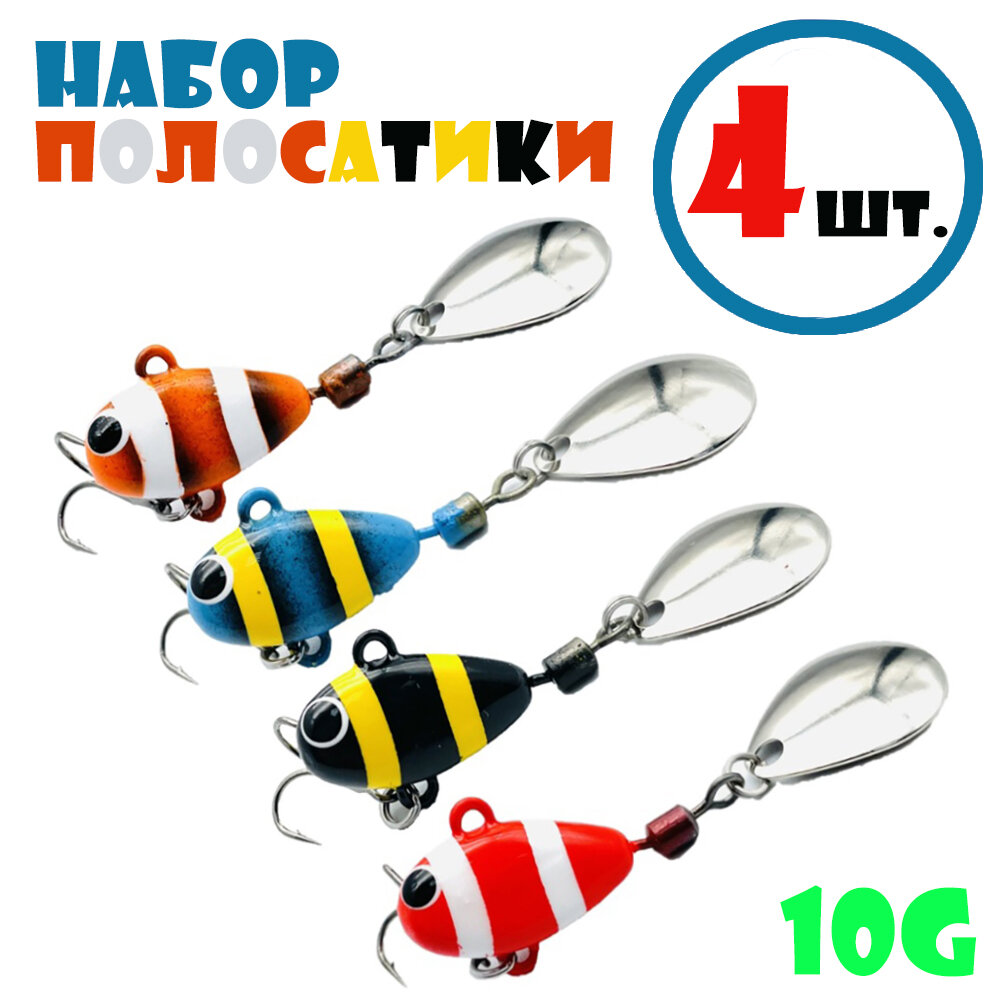 Купить Набор для рыбалки Тейл-Спиннеры Uf-Studio Hurricane 10g #Полосатики (4 шт.)