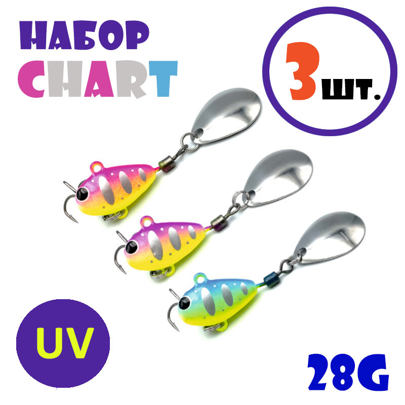 Купить Набор для рыбалки Тейл-Спиннеры Uf-Studio Hurricane 28g #Chart (3 шт.)