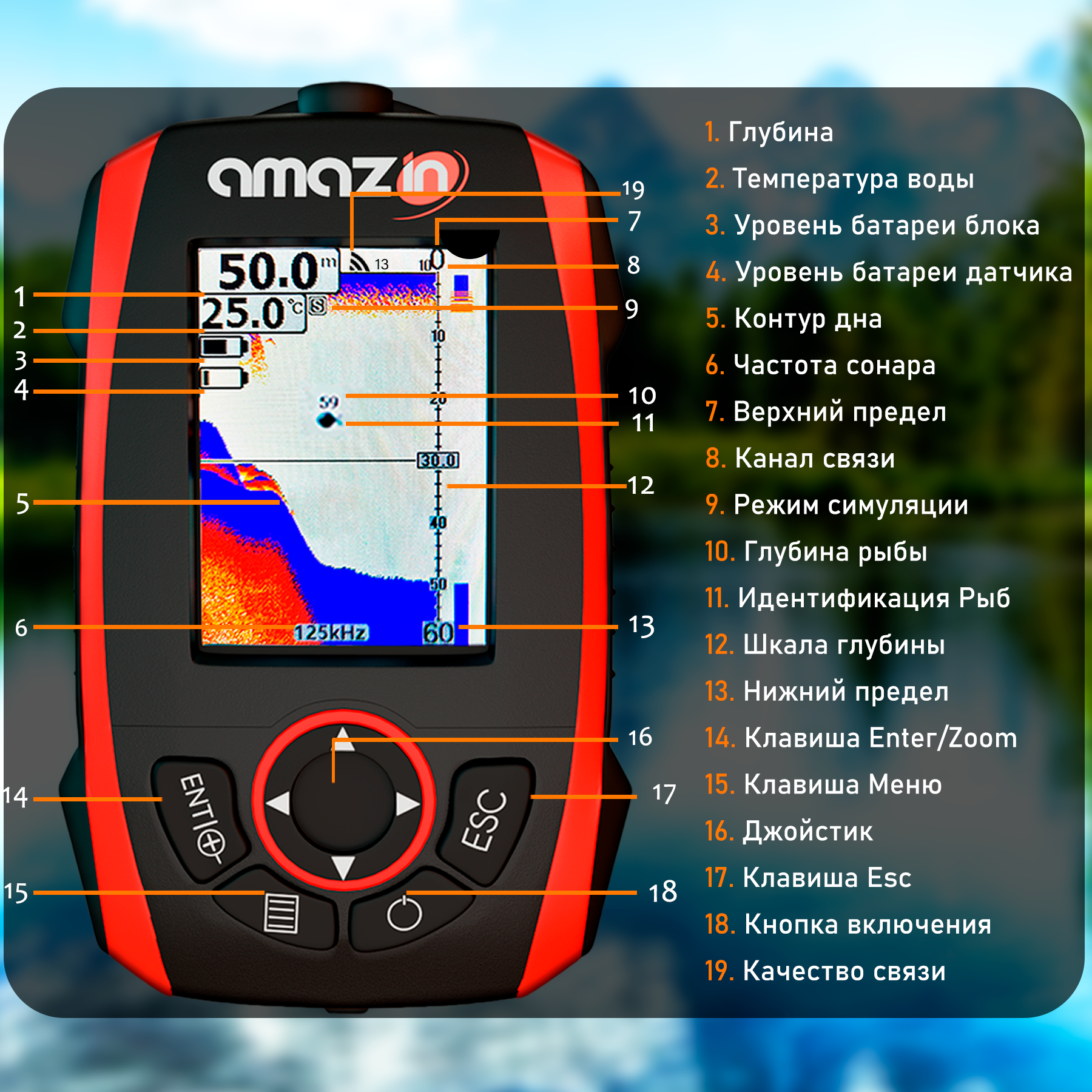 Эхолот для рыбалки беспроводной Amazin FF777-PRO-W с увеличенной дальностью сигнала до 150 метров интересное: