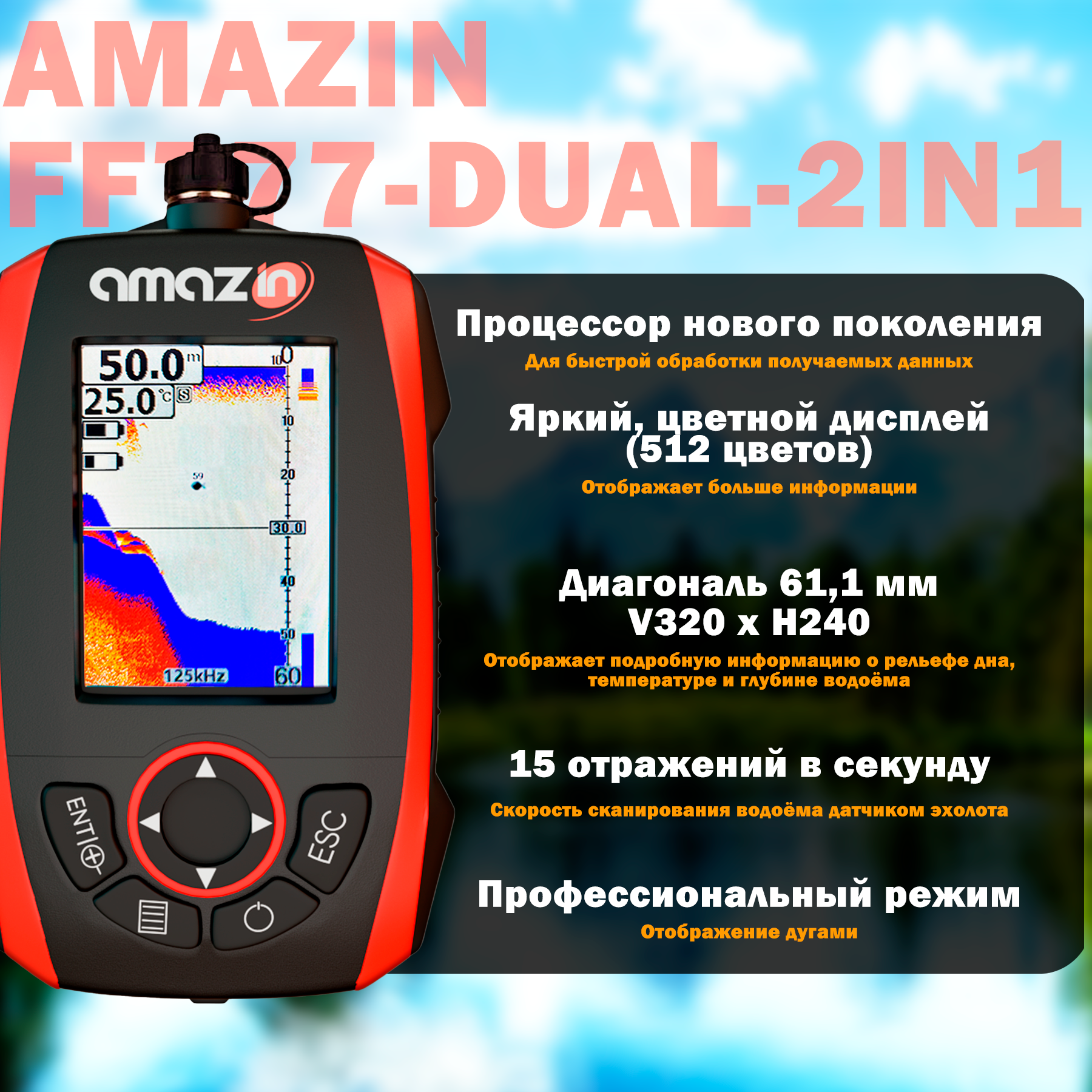Купить Эхолот для рыбалки с лодки и берега Amazin FF777-DUAL-2IN1 с двумя датчиками
