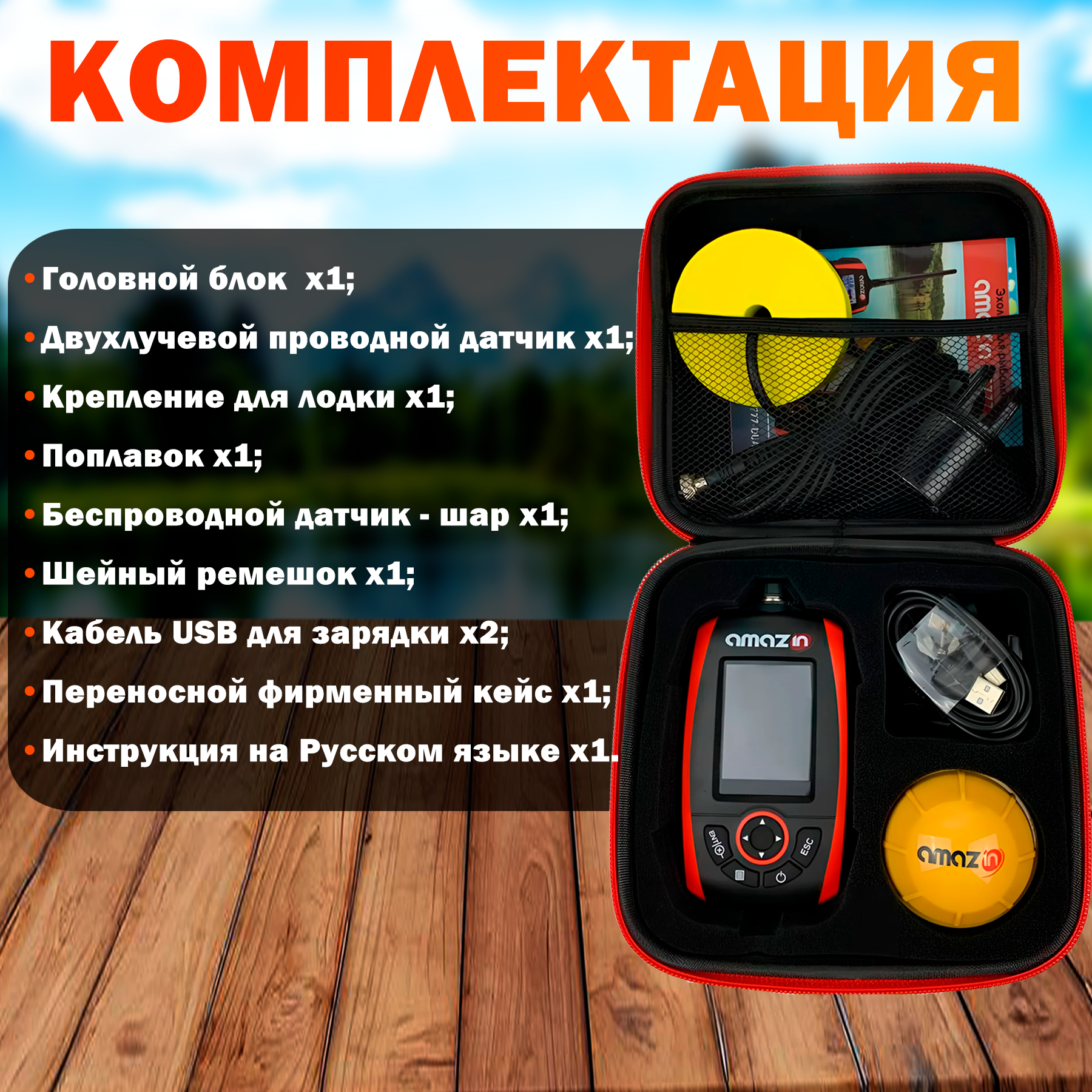 Эхолот для рыбалки с лодки и берега Amazin FF777-DUAL-2IN1 с двумя датчиками интересное: