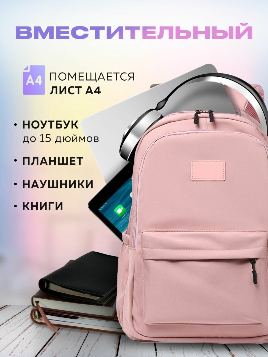 Рюкзак городской, спортивный, дорожный, для ручной клади, с карманом антивор, 20 литров, 42х30 см, цвет розовый интересное: