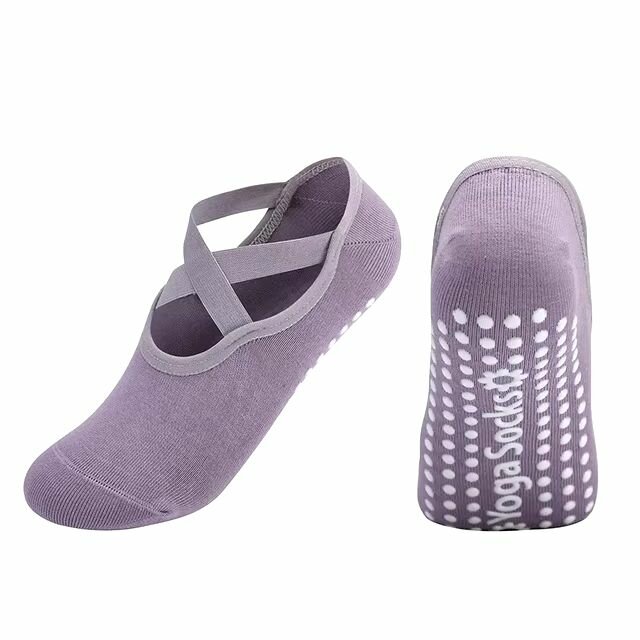 Купить Носки противоскользящие для йоги фитнеса и пилатеса. Фиолетовые с лямками