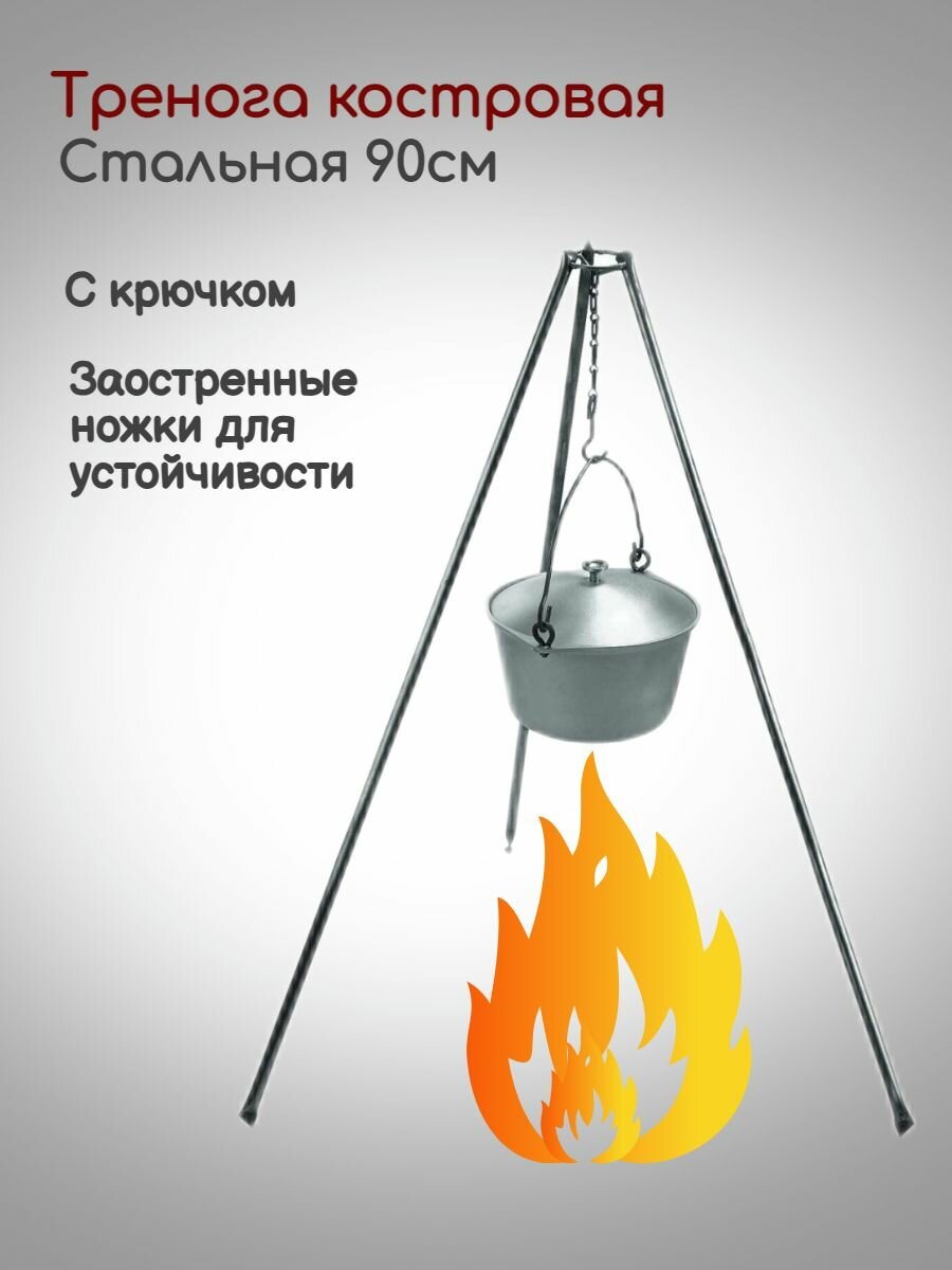 Тренога костровая стальная с цепью и крючком для котелка 90см. складная интересное: