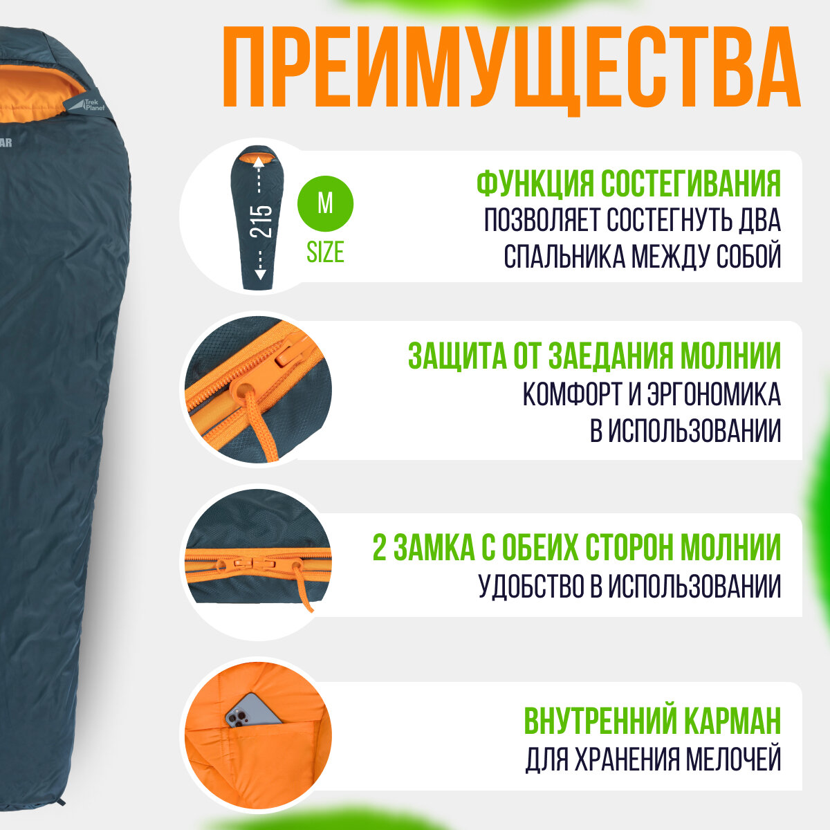 Спальный мешок Trek Planet Dakar M, правая молния, синий интересное: