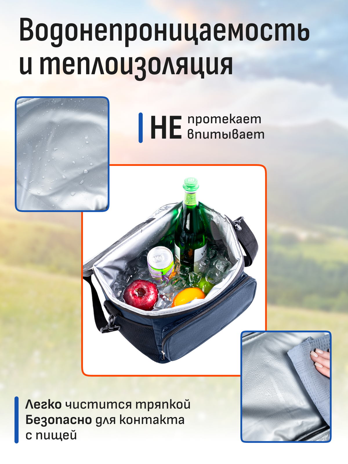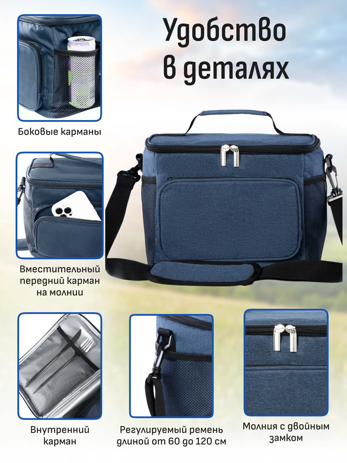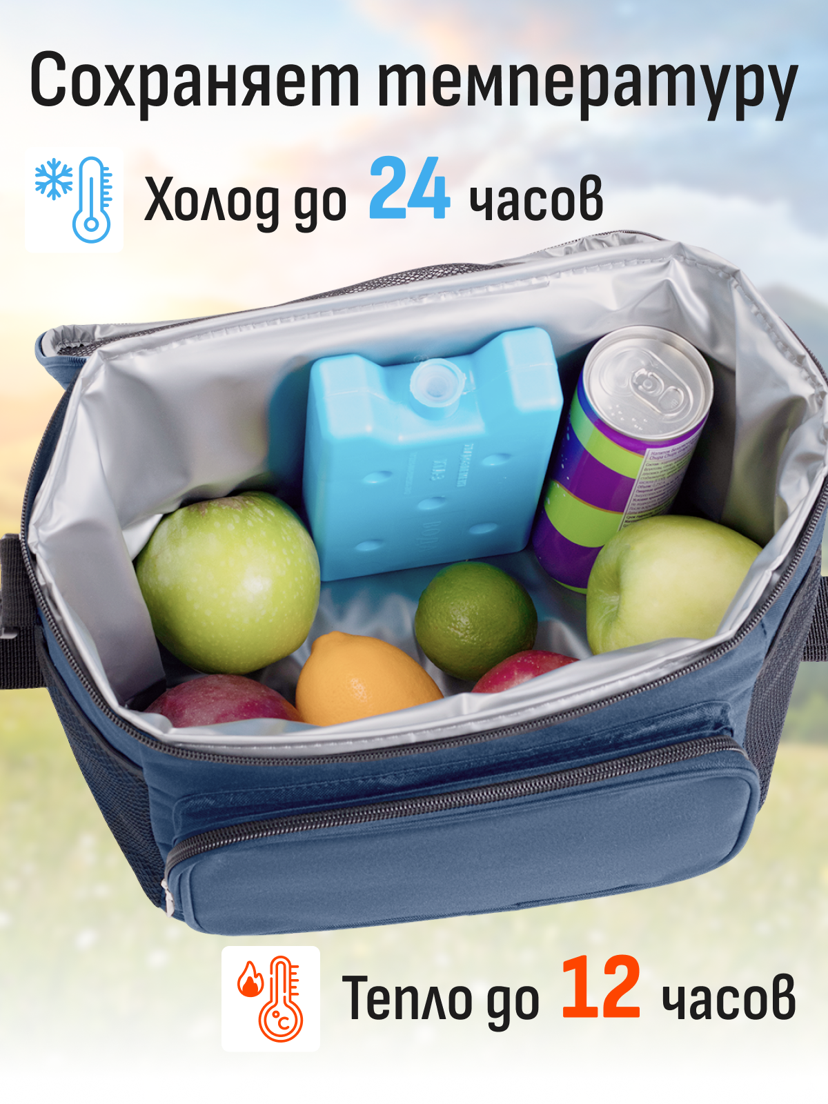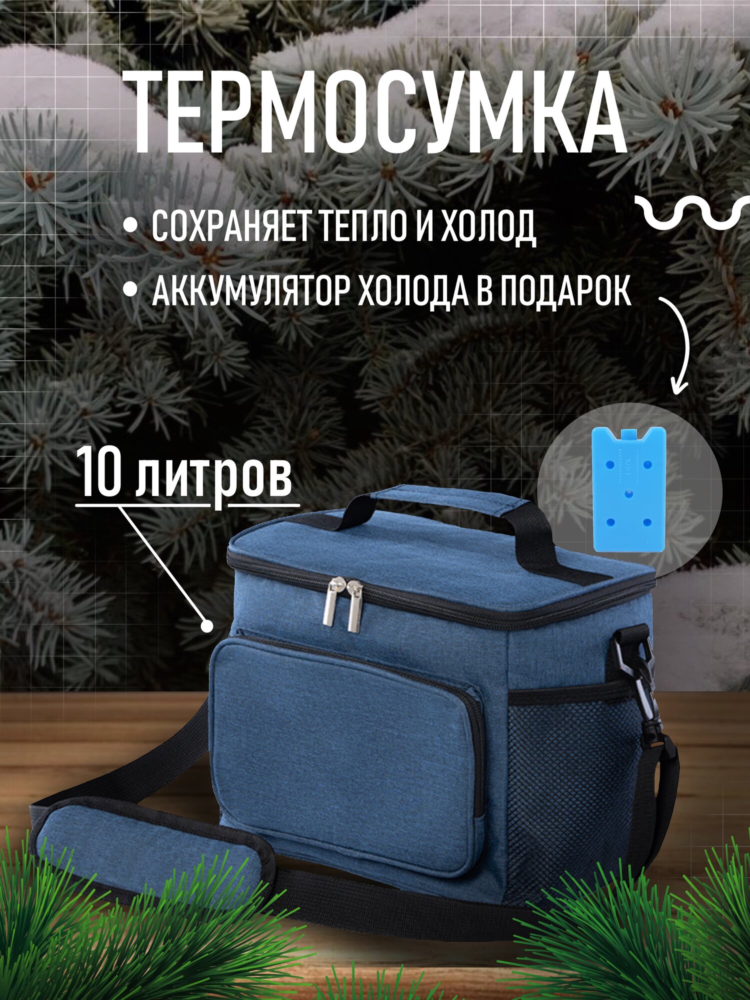 Термосумка холодильник для продуктов и напитков / для ланча (пикника), объем 10 литров, синий + аккумулятор холода интересное: