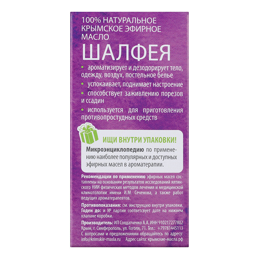 Эфирное масло Крымские масла Шалфей 5 мл интересное: