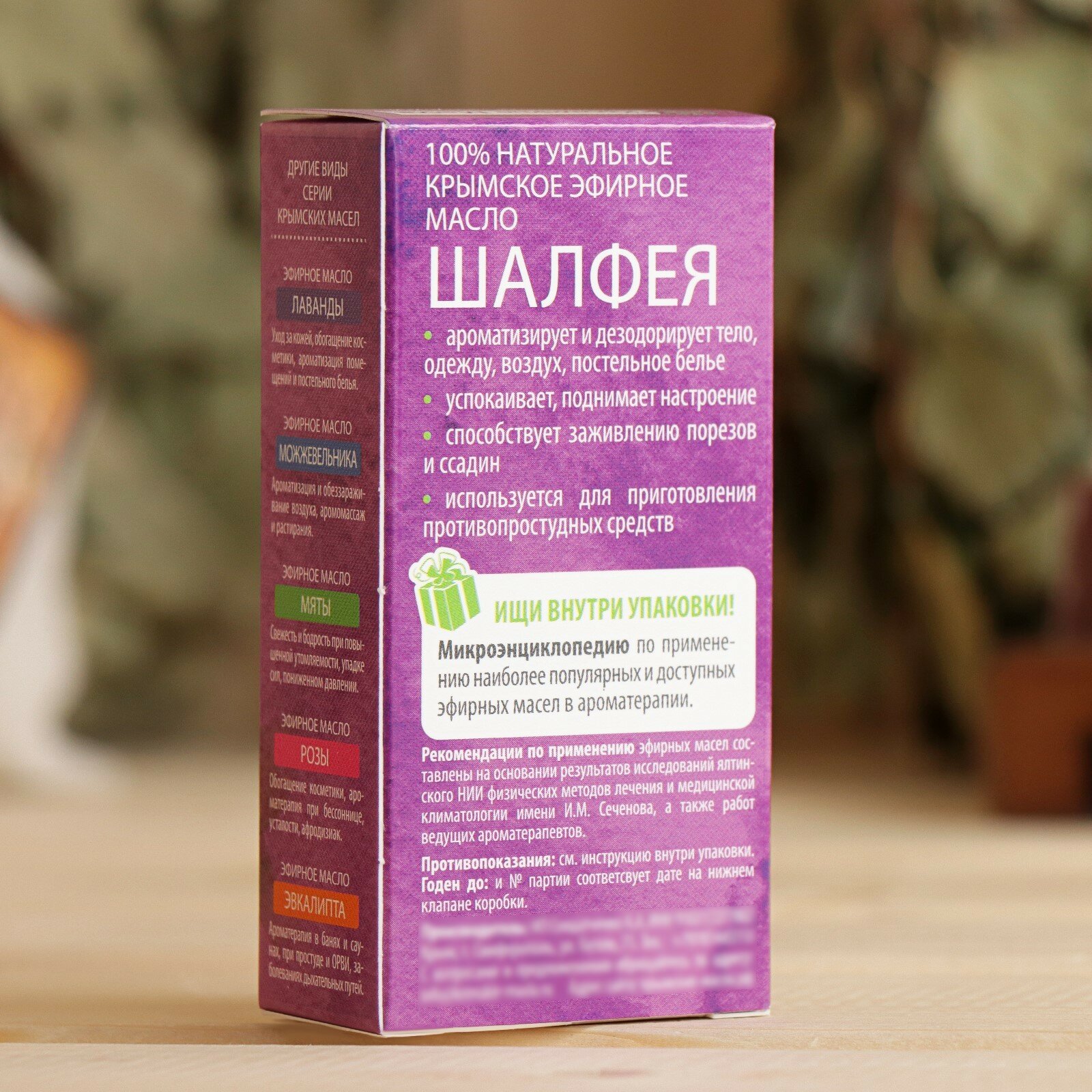 | Меры предосторожности | противопоказания: индивидуальная непереносимость шалфея и его эфирного масла; беременность, кормление грудью; наличие такого заболевания как эпилепсия; гипертония; не применять для младенцев и маленьких детей |