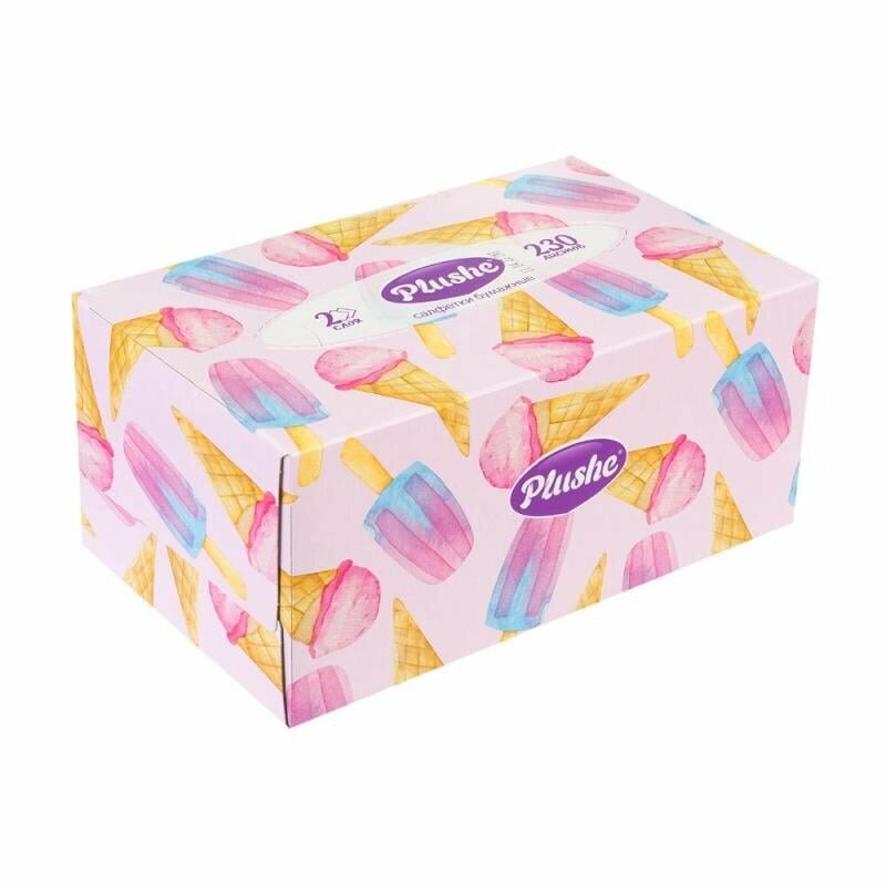 Бумажные салфетки в коробке Plushe 230 салфеток, 2 слоя, универсальные