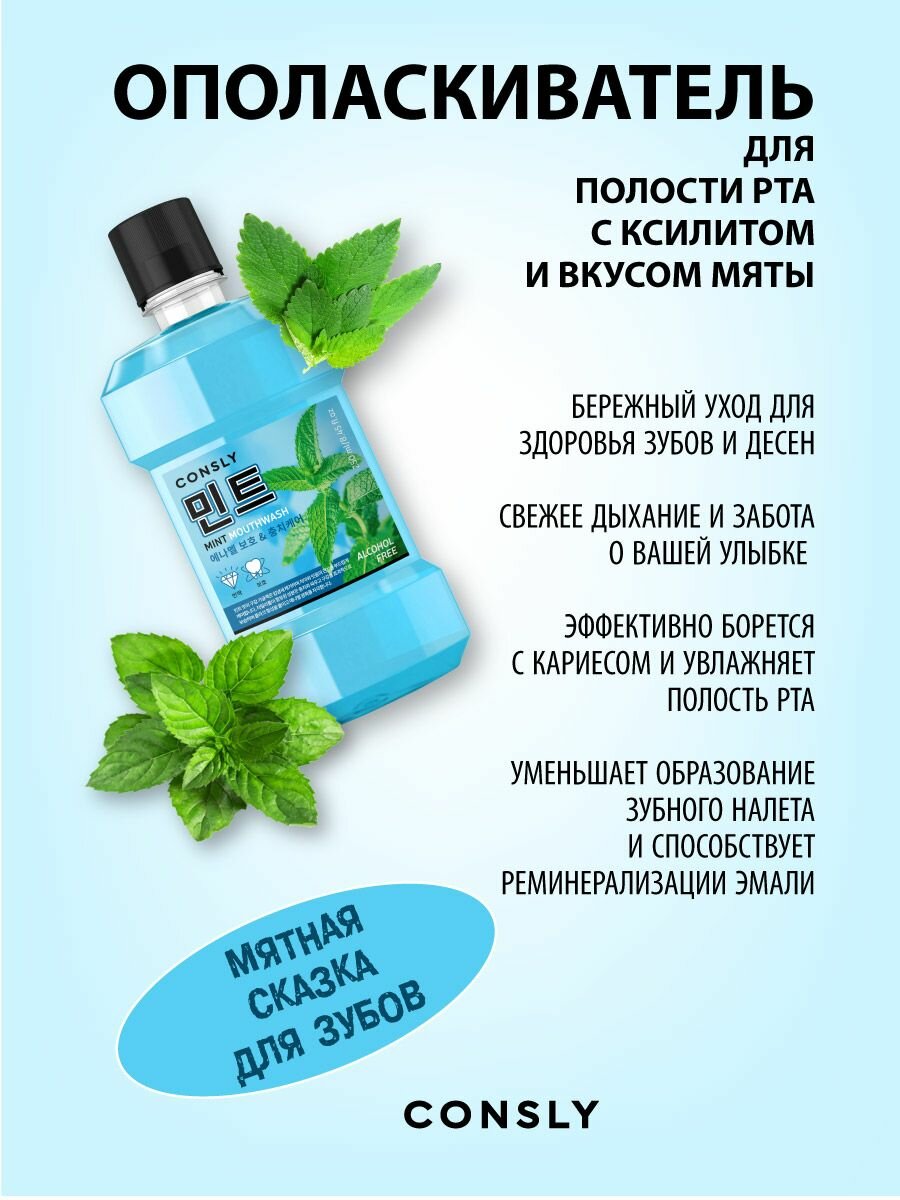 Купить Ополаскиватель для полости рта Consly с ксилитом и вкусом мяты, 250 мл