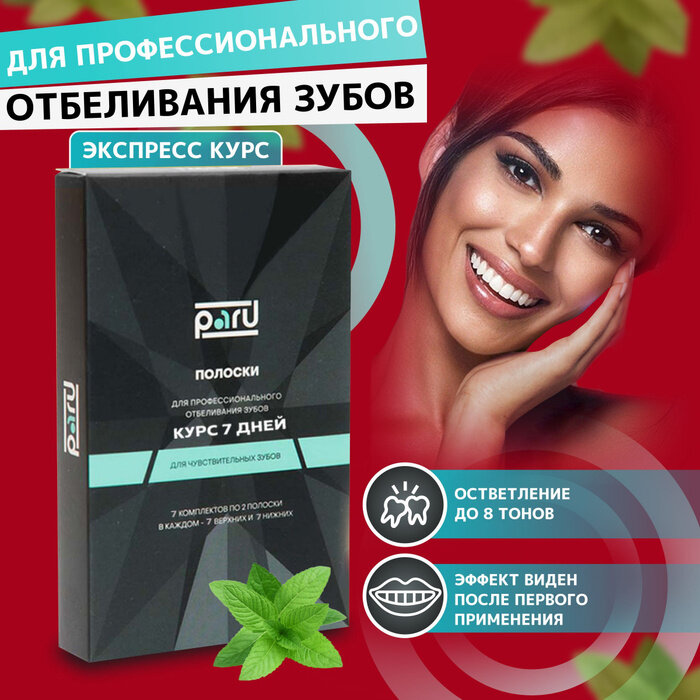 Отбеливающие полоски PARU 14 штук на 7 дней. Безопасное домашнее отбеливание зубов без вреда для эмали. Набор полосок для отбеливания экспресс курс